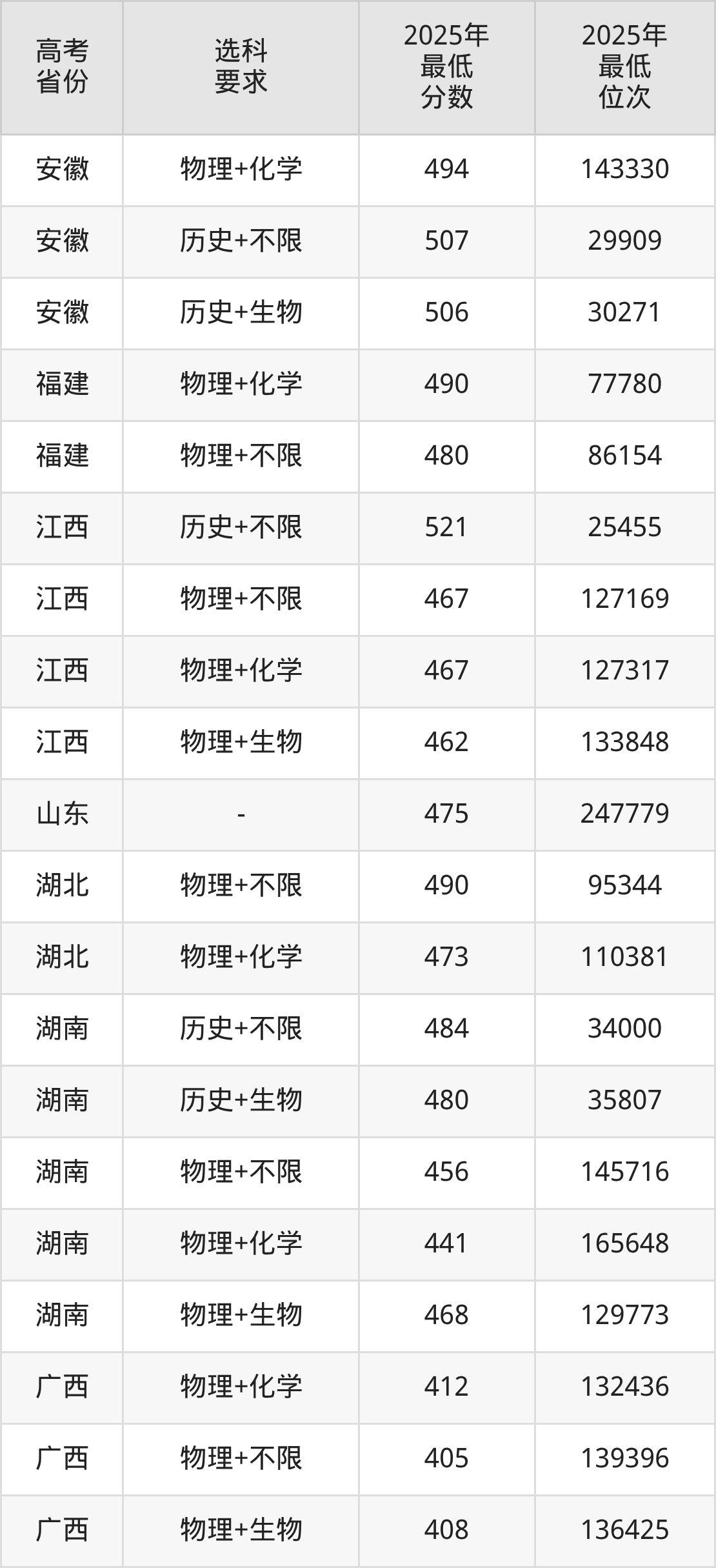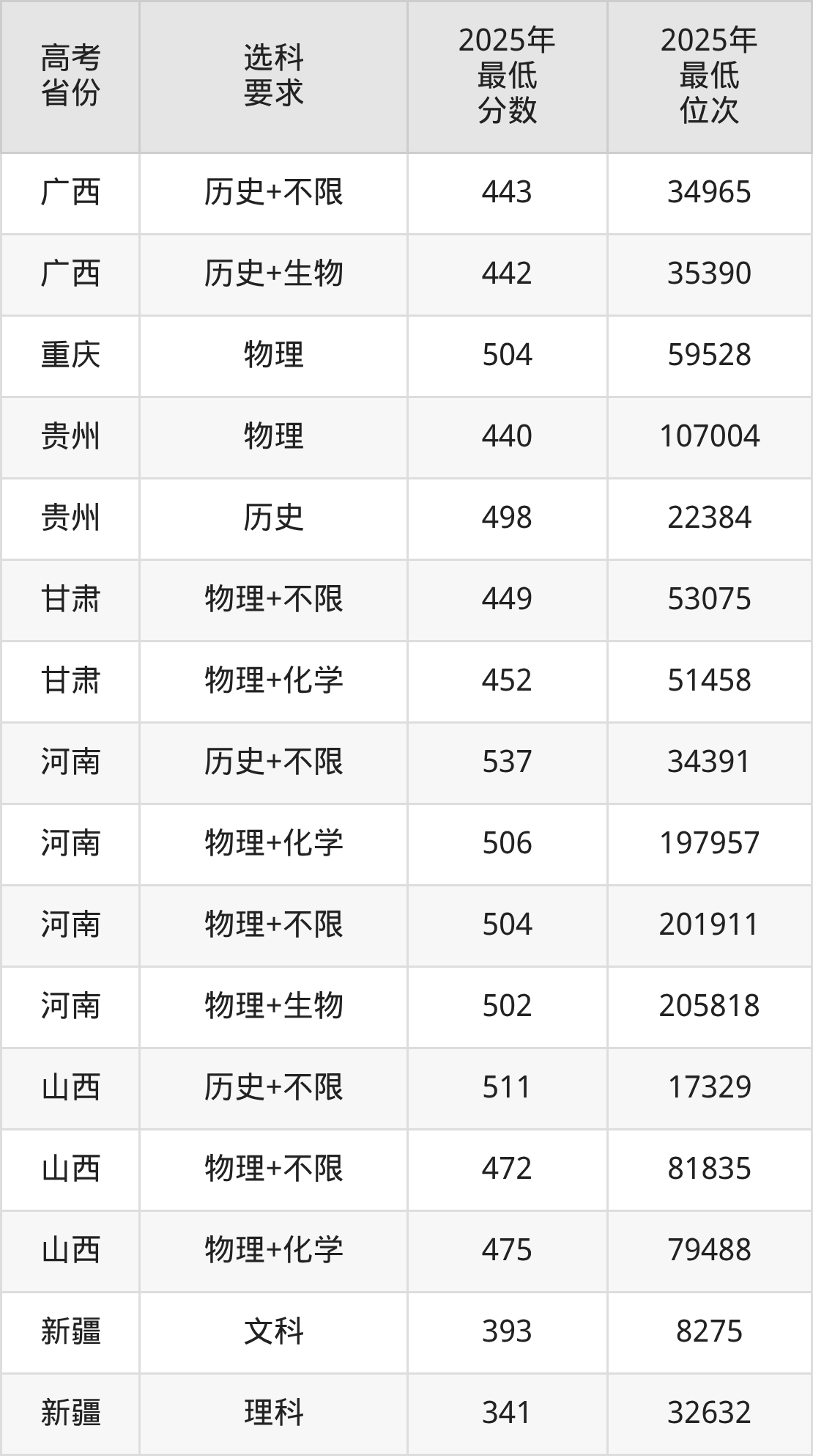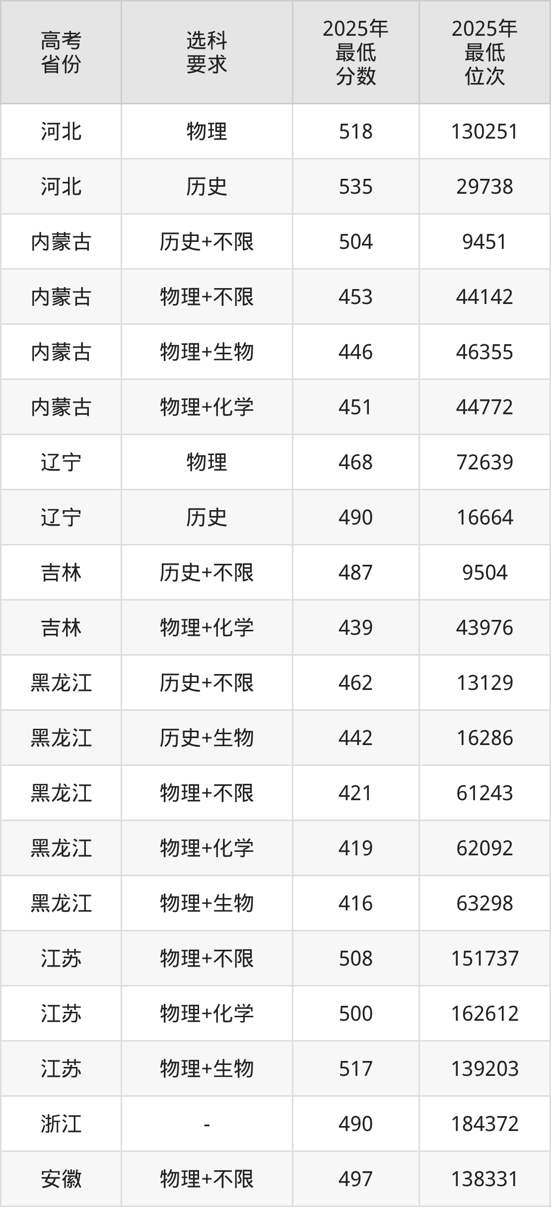 在2025年黑龙江高考物理类招生时,211收分最低的是郑州大学第003组,最低分是389分、位次是74217位。再看黑龙江八一农垦大学,2025年在黑龙江物理类的最低录取分数线是416分,最低位次是63298位。