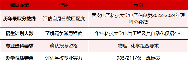 2、多维数据交叉验证:除分数线外,完整的志愿填报系统还应整合招生计划数、专业选科要求(如上海"物化生"组合)、学费标准(如西安电子科技大学电子信息类专业6600元/年)、办学层次(985/211/双一流)等关键信息。