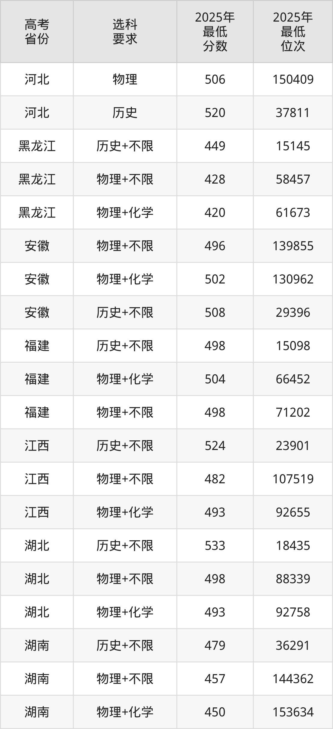 在2025年福建高考物理类招生时,211收分最低的是西藏大学500组,最低分是541分、位次是40511位。再看福建技术师范学院,2025年在福建物理类的最低录取分数线是498分,最低位次是71202位。