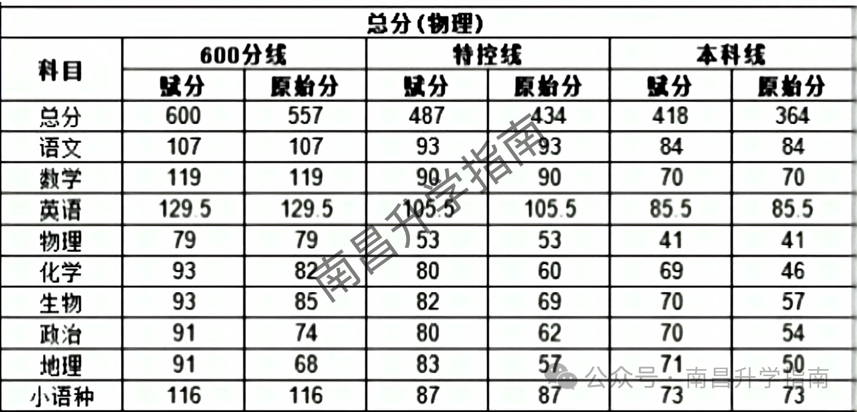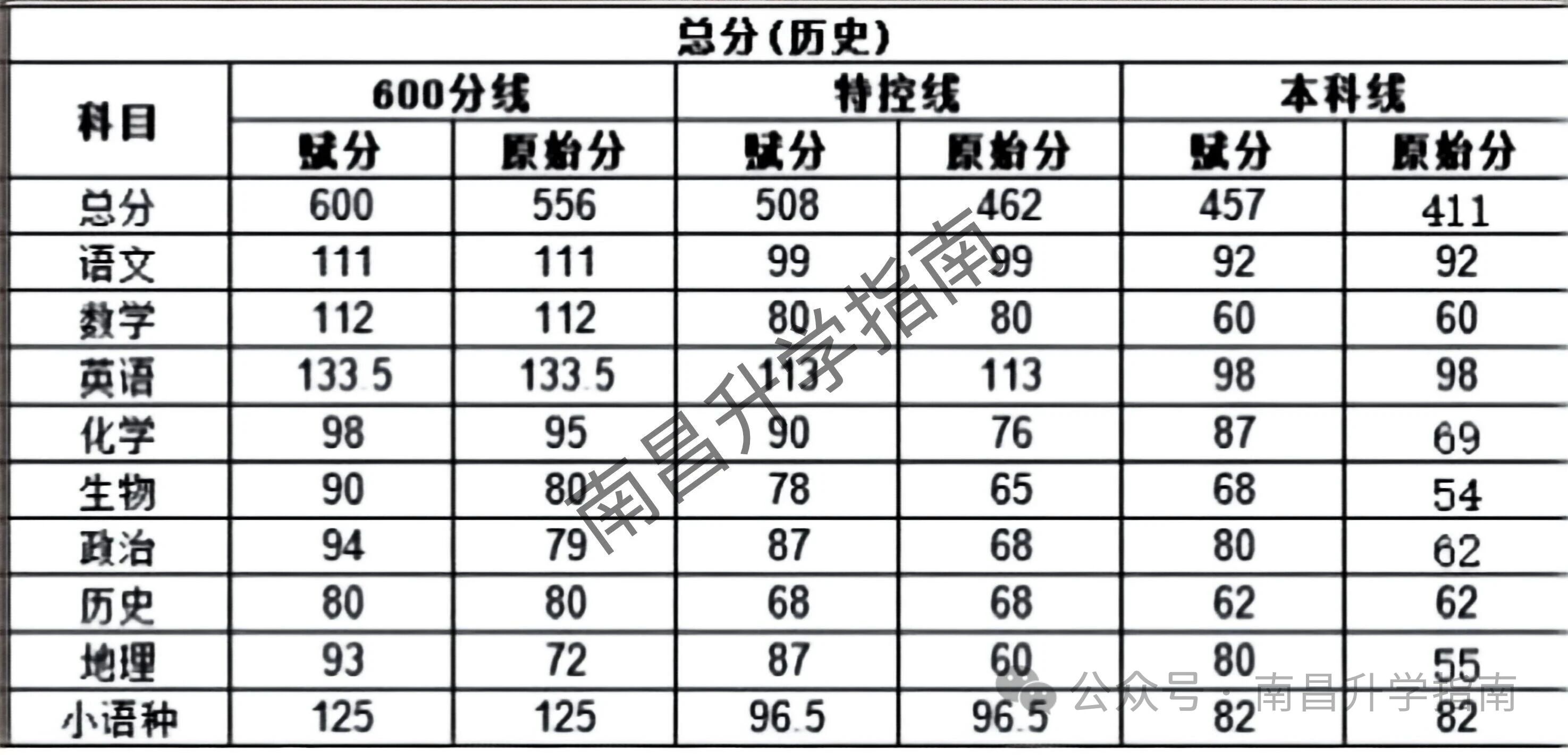 各科分数要求(按赋分/原始分对照):