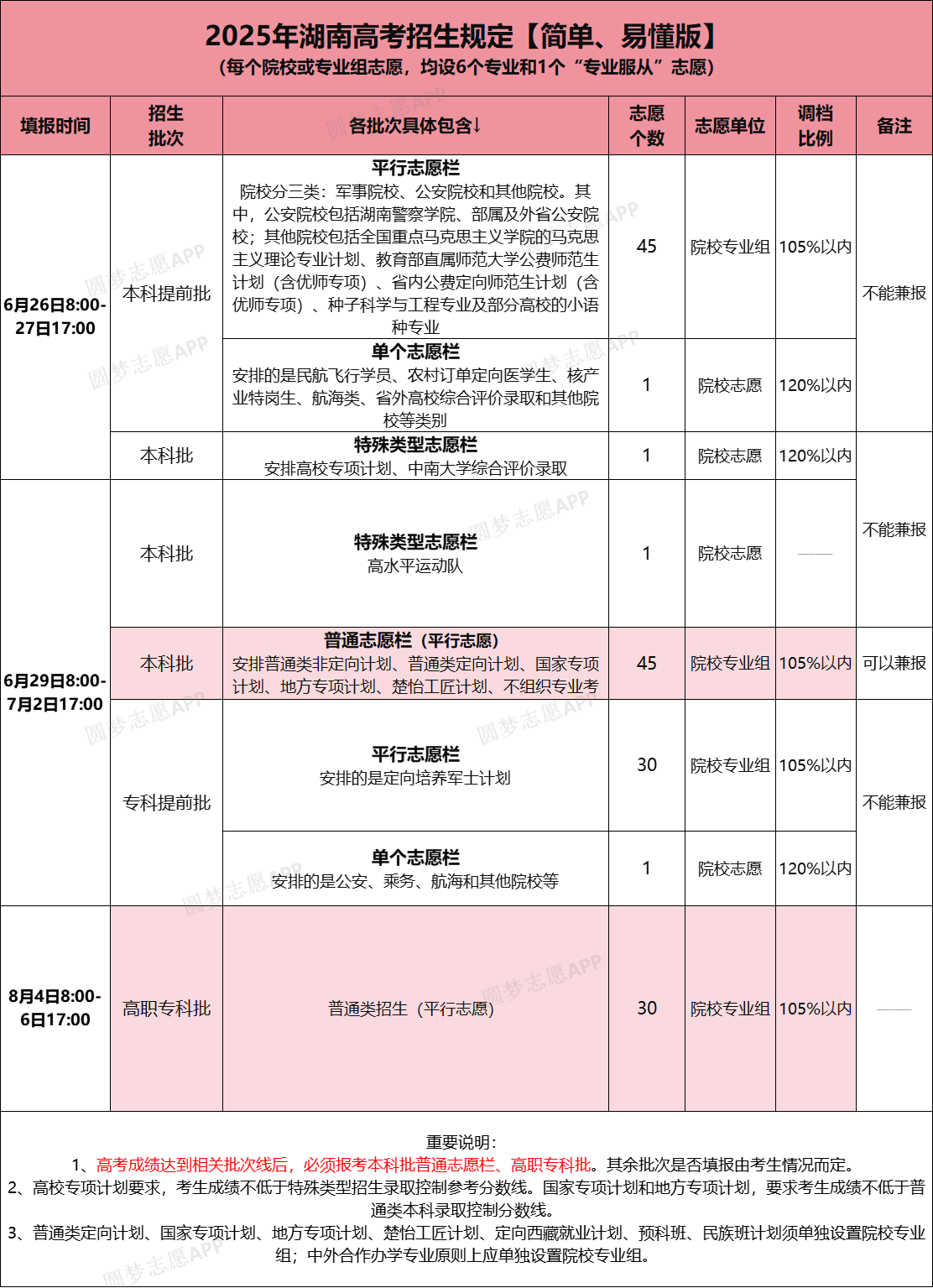 2026年湖南本科提前批(军事院校、公安院校和其他院校)、专科提前批(定向培养军士)的录取规则是平行志愿;湖南本科提前批(民航飞行学员、农村订单定向医学生、核产业特岗生、航海类、省外高校综合评价录取和其他院校等类别)、专科提前批(公安、乘务、航海和其他院校等)的录取规则是单个志愿。下文将为大家详解!