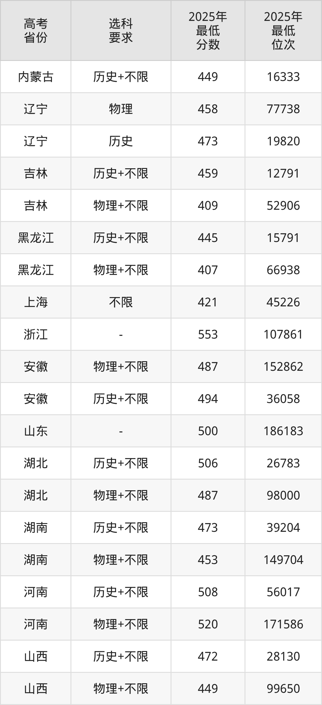 在2025年吉林高考物理类招生时,211收分最低的是延边大学第049组,最低分是387分、位次是58906位。再看吉林艺术学院,2025年在吉林物理类的最低录取分数线是409分,最低位次是52906位。
