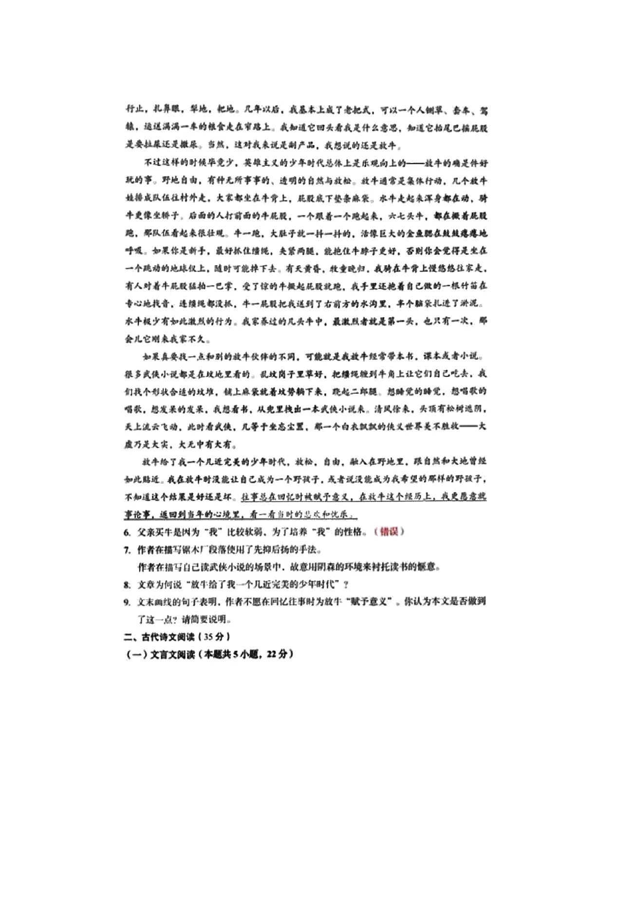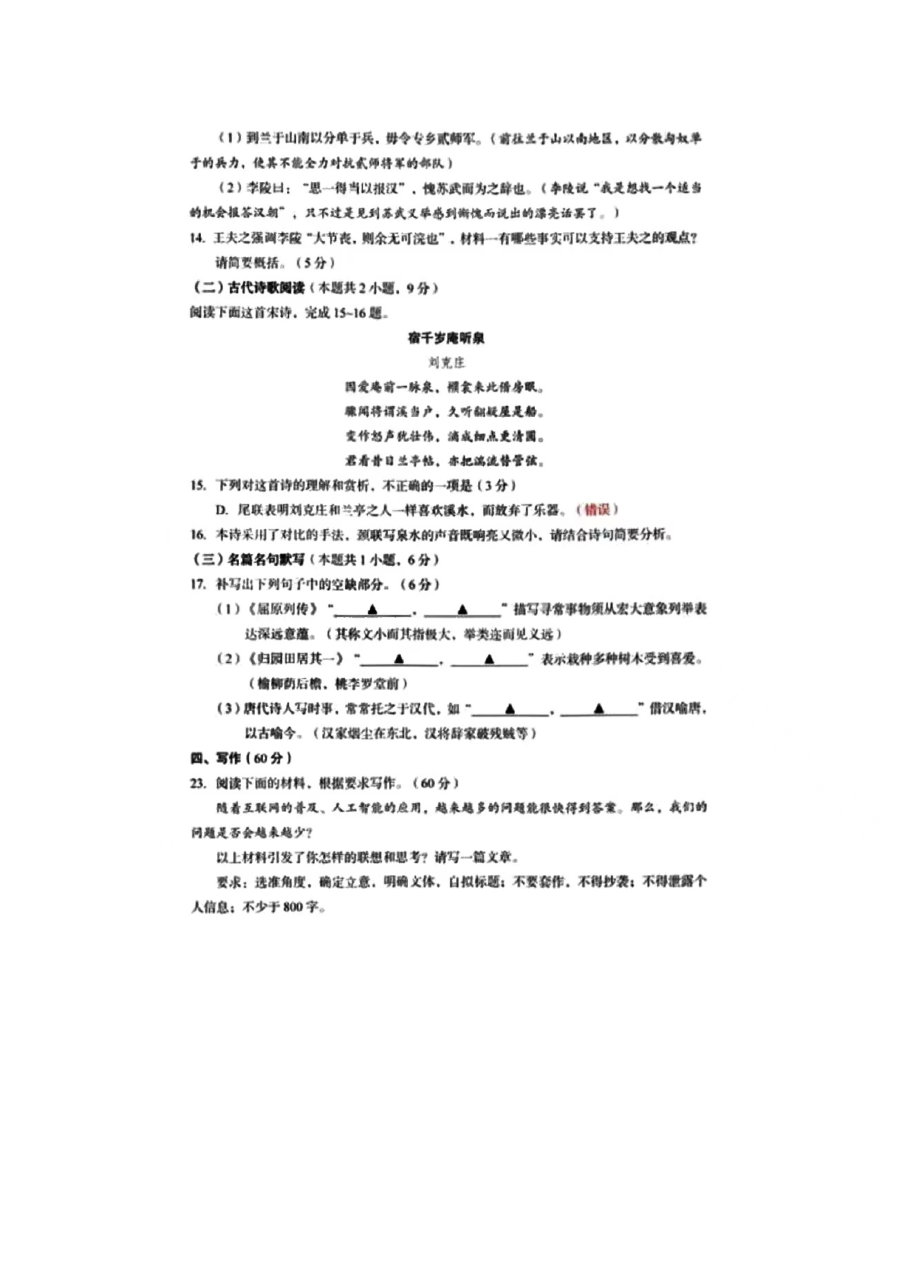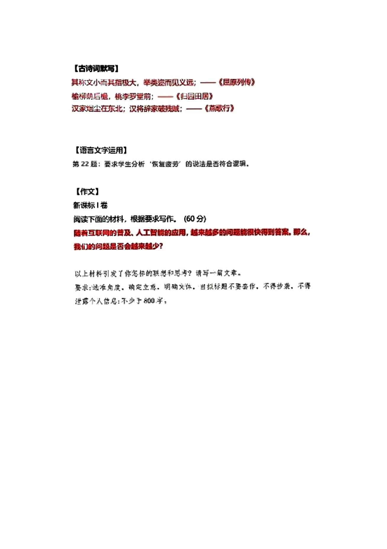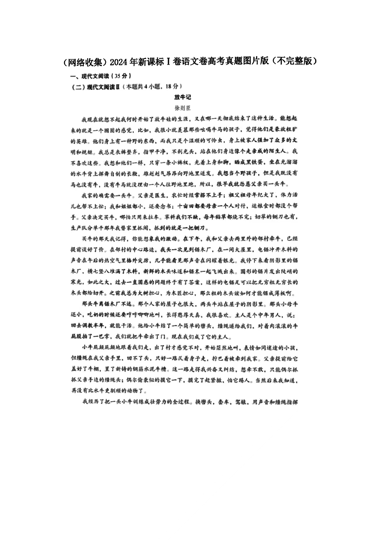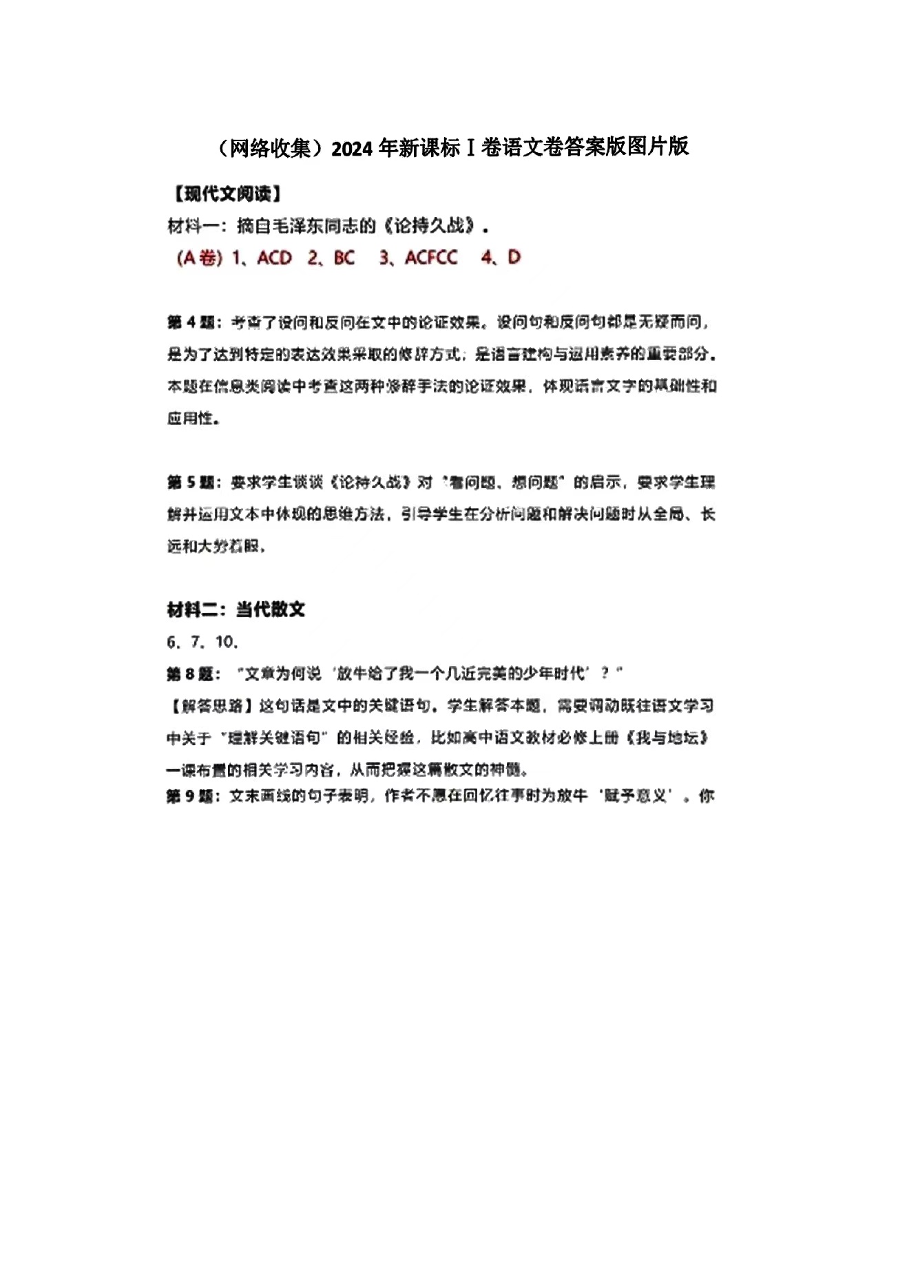 1.2024新高考一卷语文答案及试卷