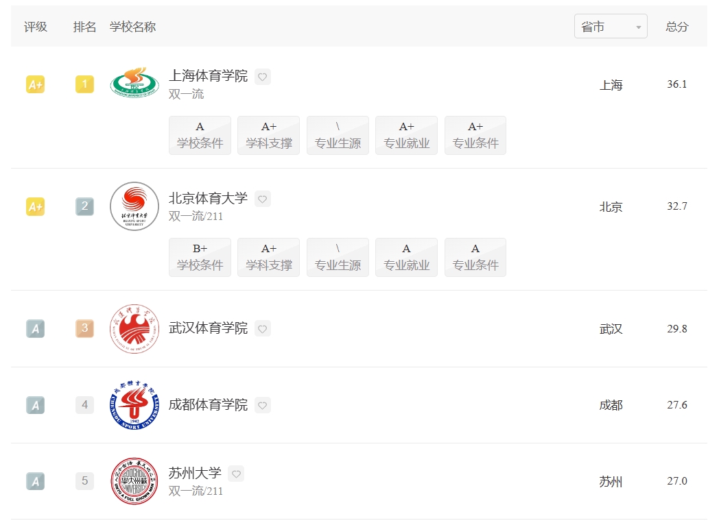 下文将为2024年高考生展示:运动康复专业全国排名前十的本科院校。