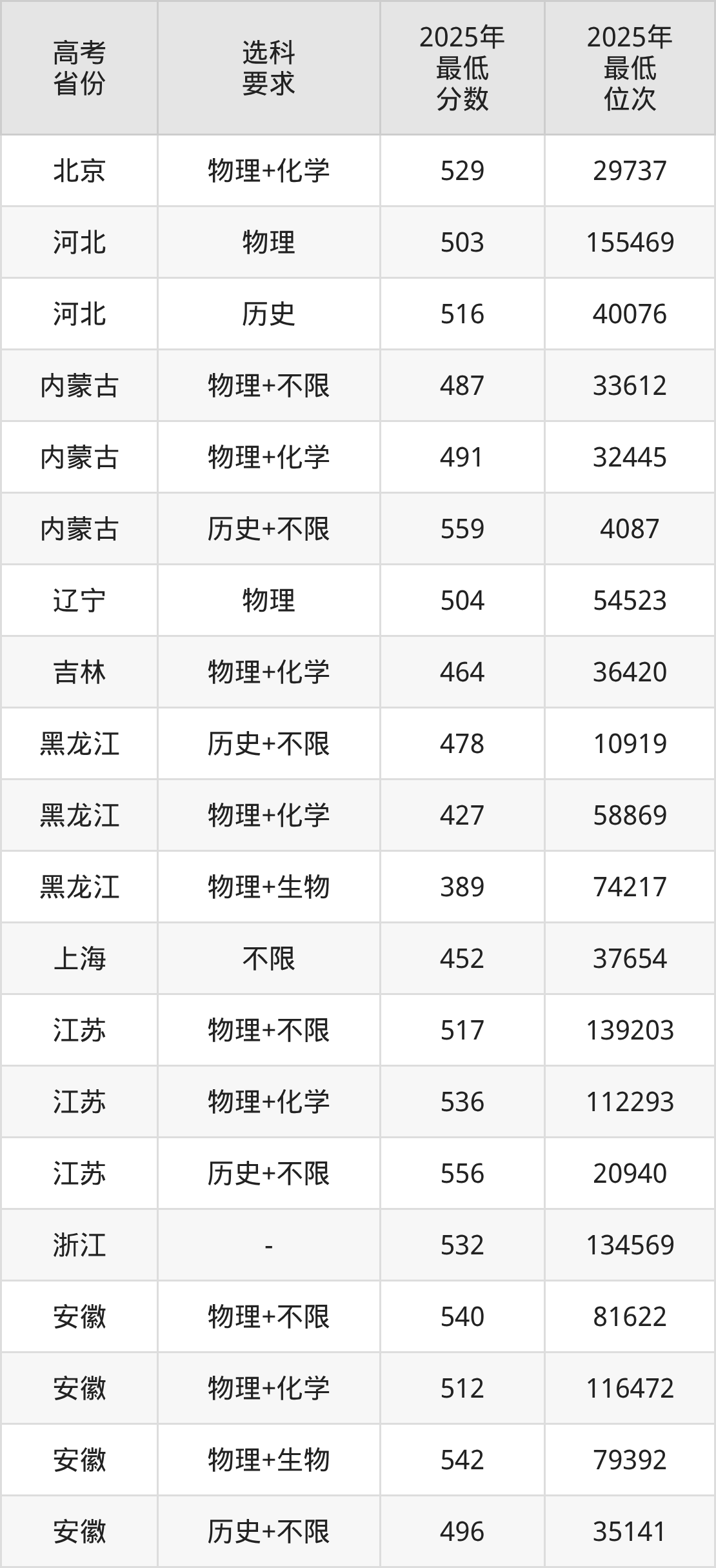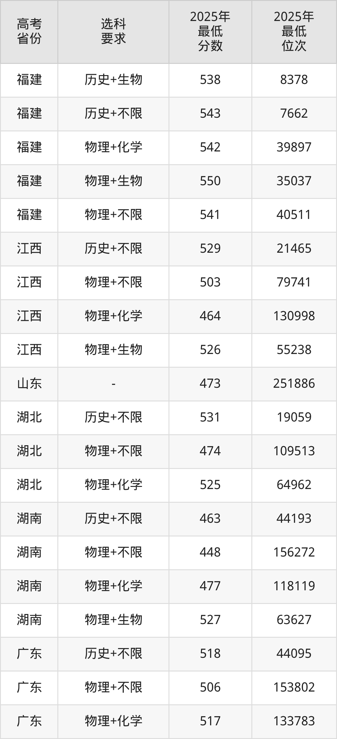 在2025年福建高考物理类招生时,211收分最低的是西藏大学500组,最低分是541分、位次是40511位。再看福建农林大学,2025年在福建物理类的最低录取分数线是541分,最低位次是40511位。