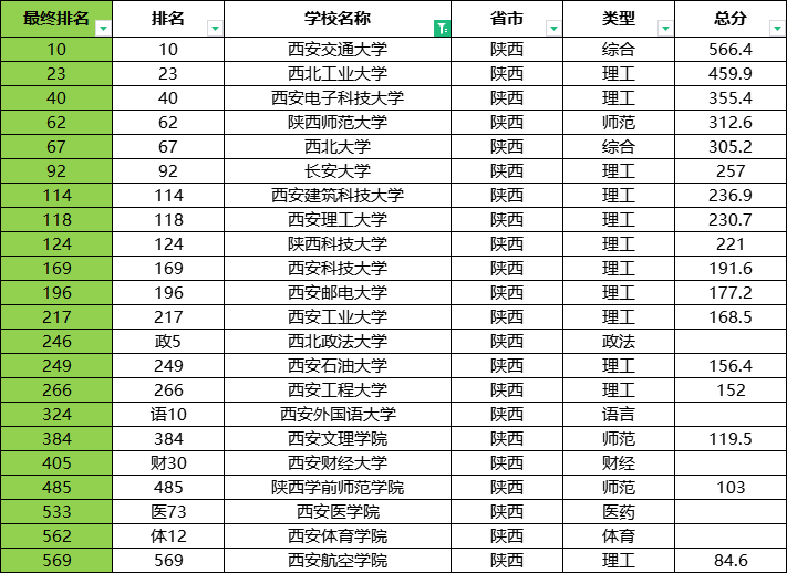 由此可见,在不同的榜单中,西安市内的各个大学排名略有差异,请大家理性参考!
