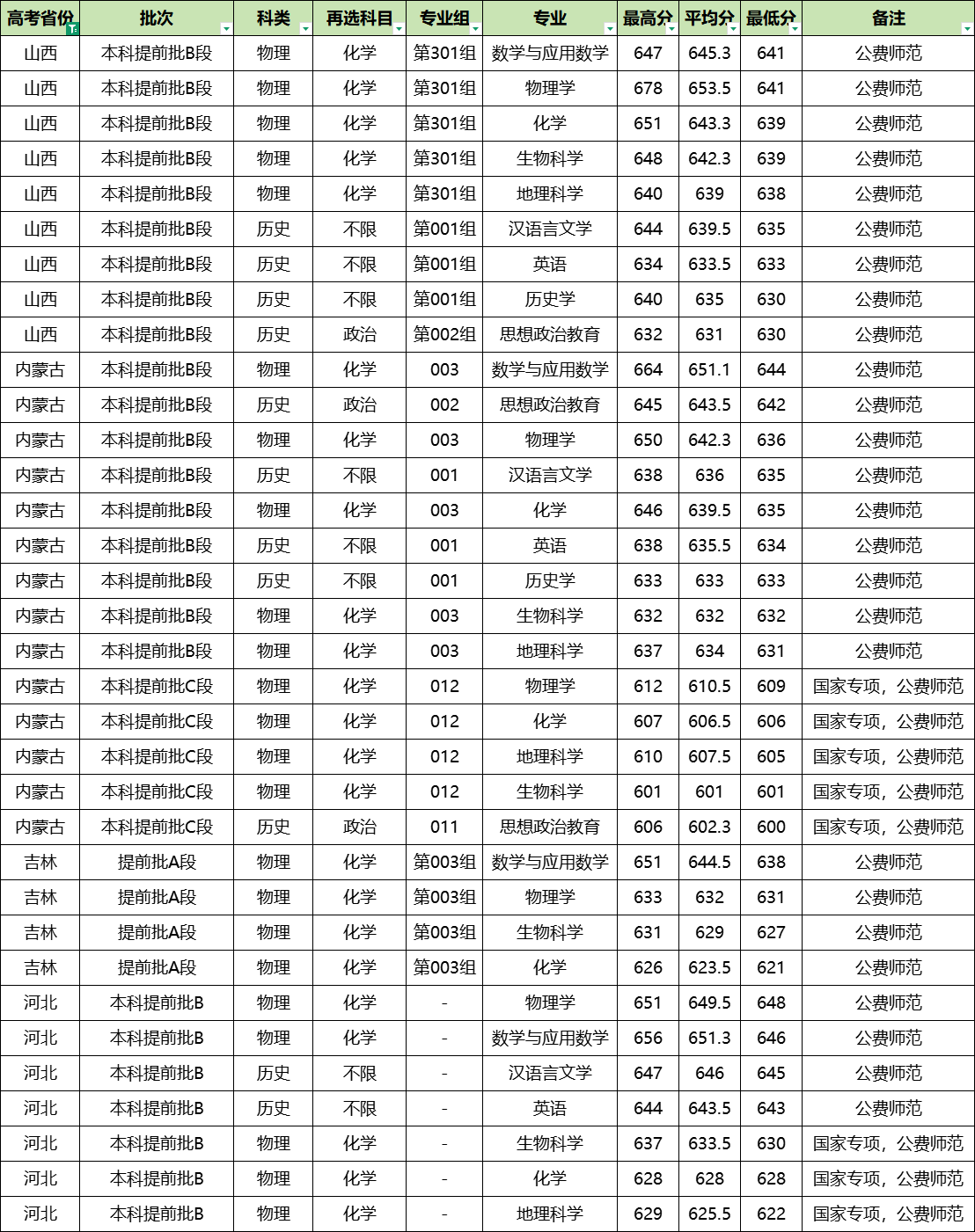 1.河北省:物理类物理学648分,数学与应用数学646分;历史类汉语言文学645分,英语643分,分数要求相对温和。