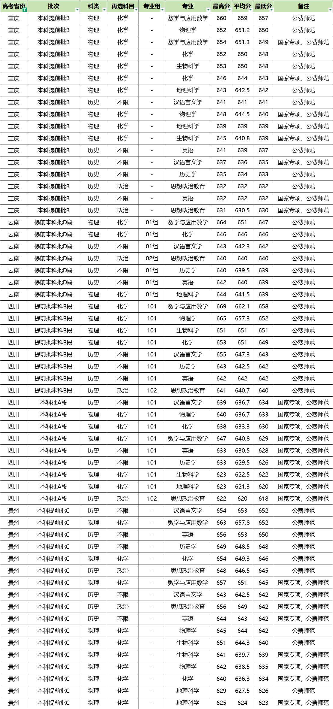 2.四川省:物理类数学与应用数学658分,生物科学651分;历史类汉语言文学643分,显示西南地区考生对华东师大的认可。