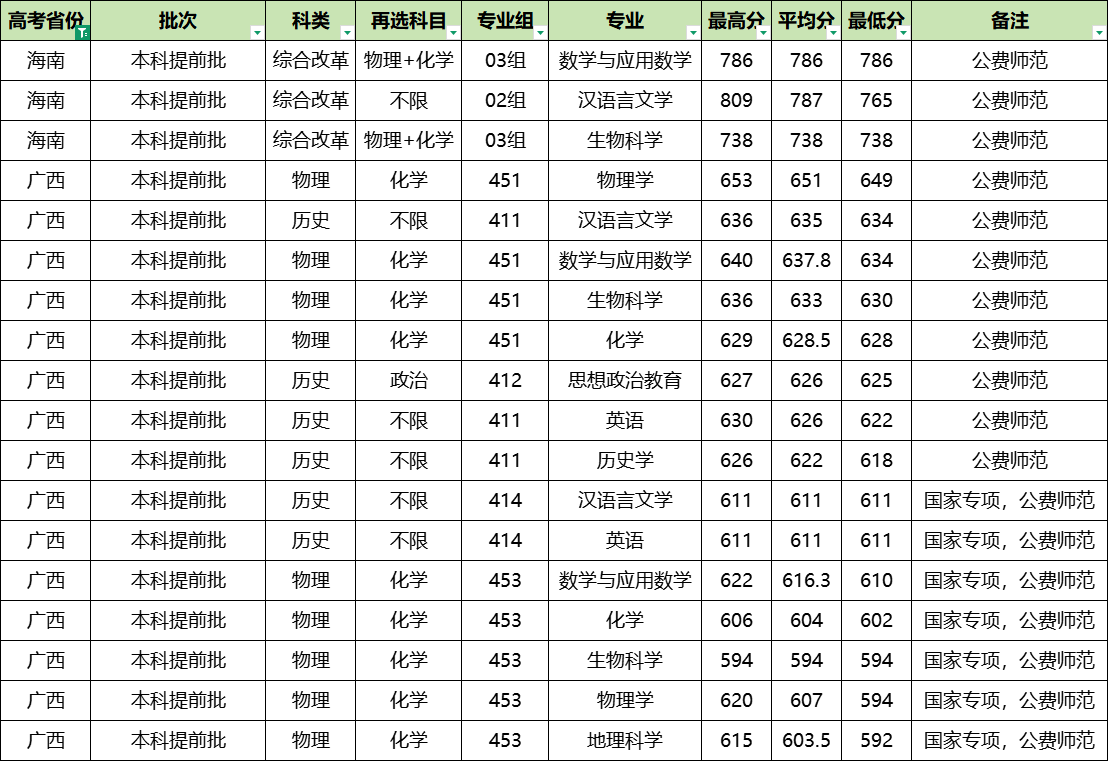 2.海南省:综合改革批次分数采用标准分,数学与应用数学786分,汉语言文学765分,体现热门专业竞争力。
