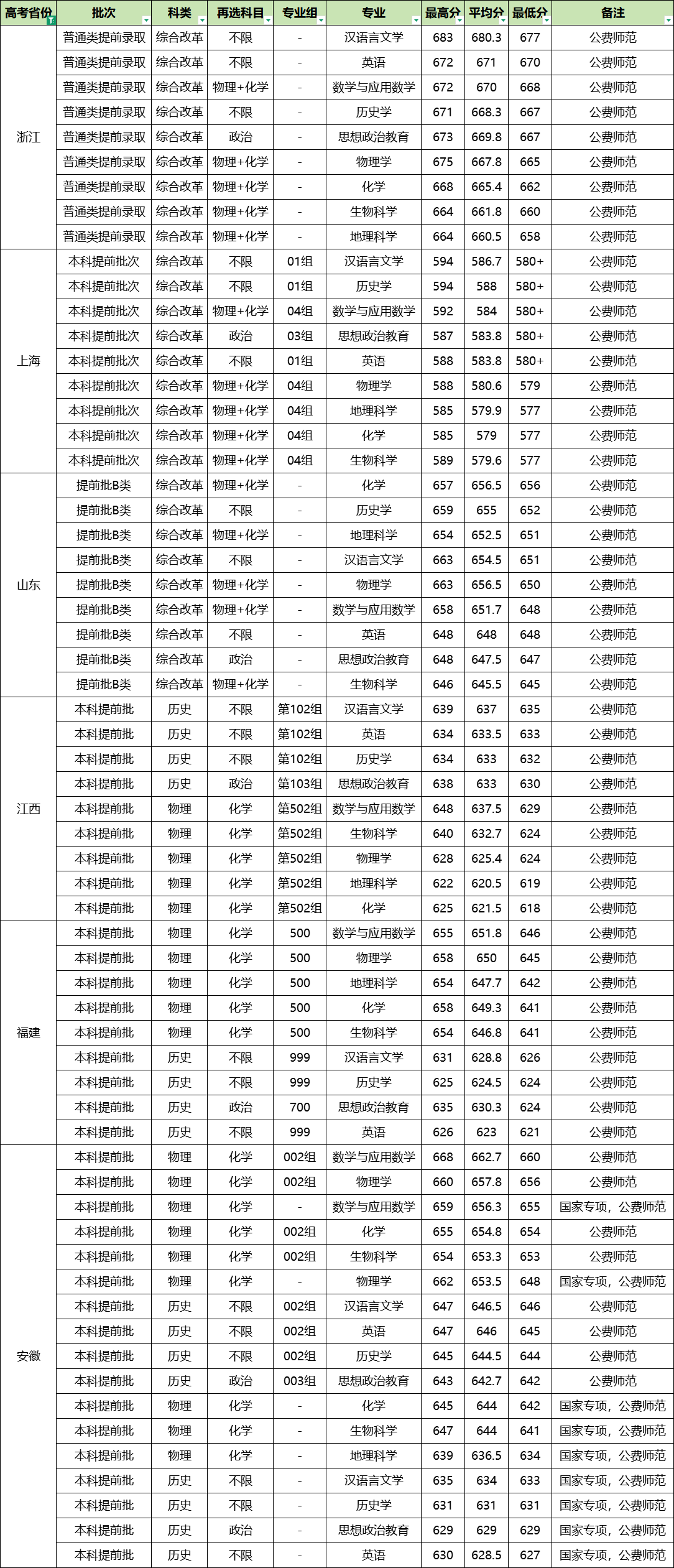 2.浙江省:分数要求较高,汉语言文学达677分,英语670分,数学与应用数学668分,理科专业普遍在658-665分之间,显示华东师大在浙江的认可度。