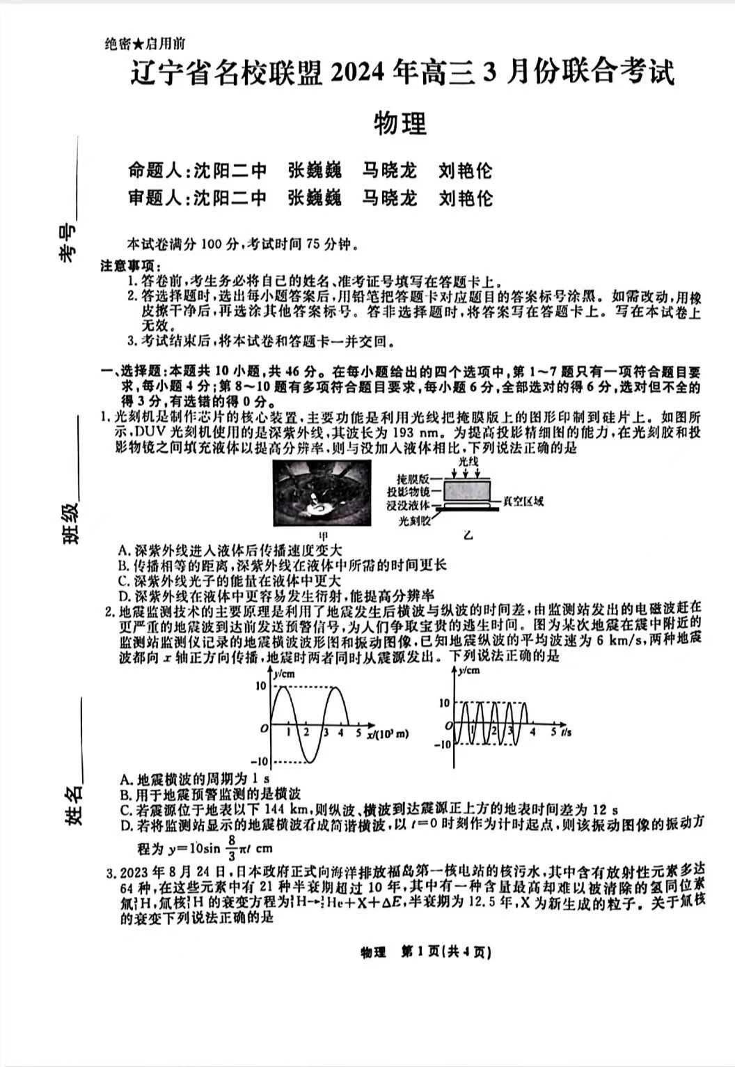 4、辽宁名校联盟2024物理/历史答案
