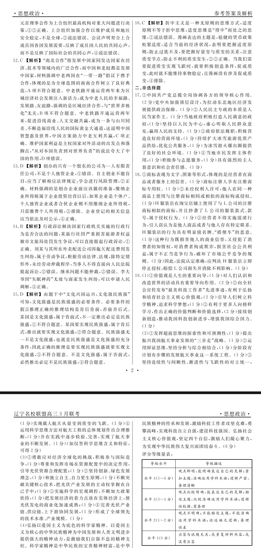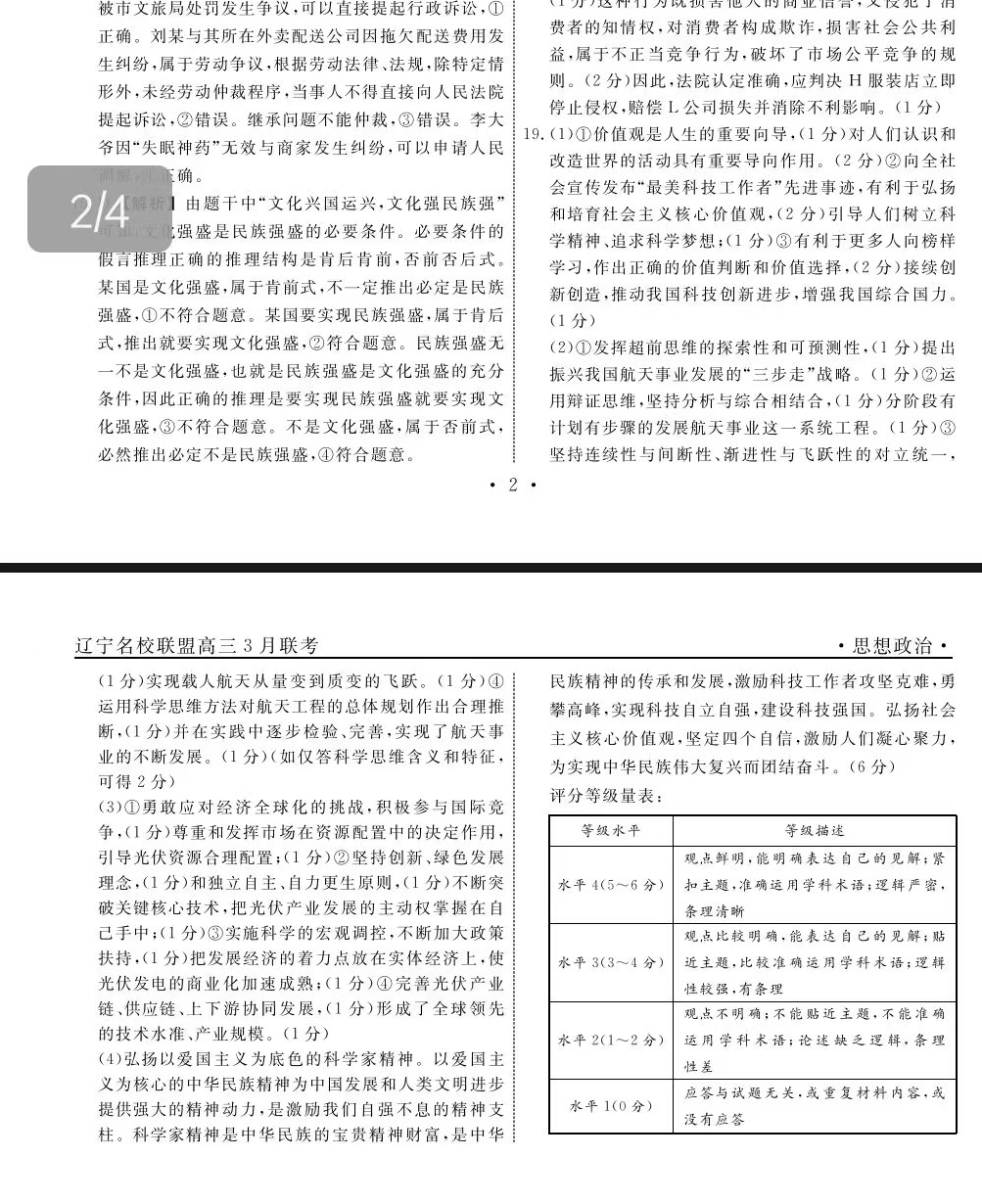 二、辽宁名校联盟2024答案汇总