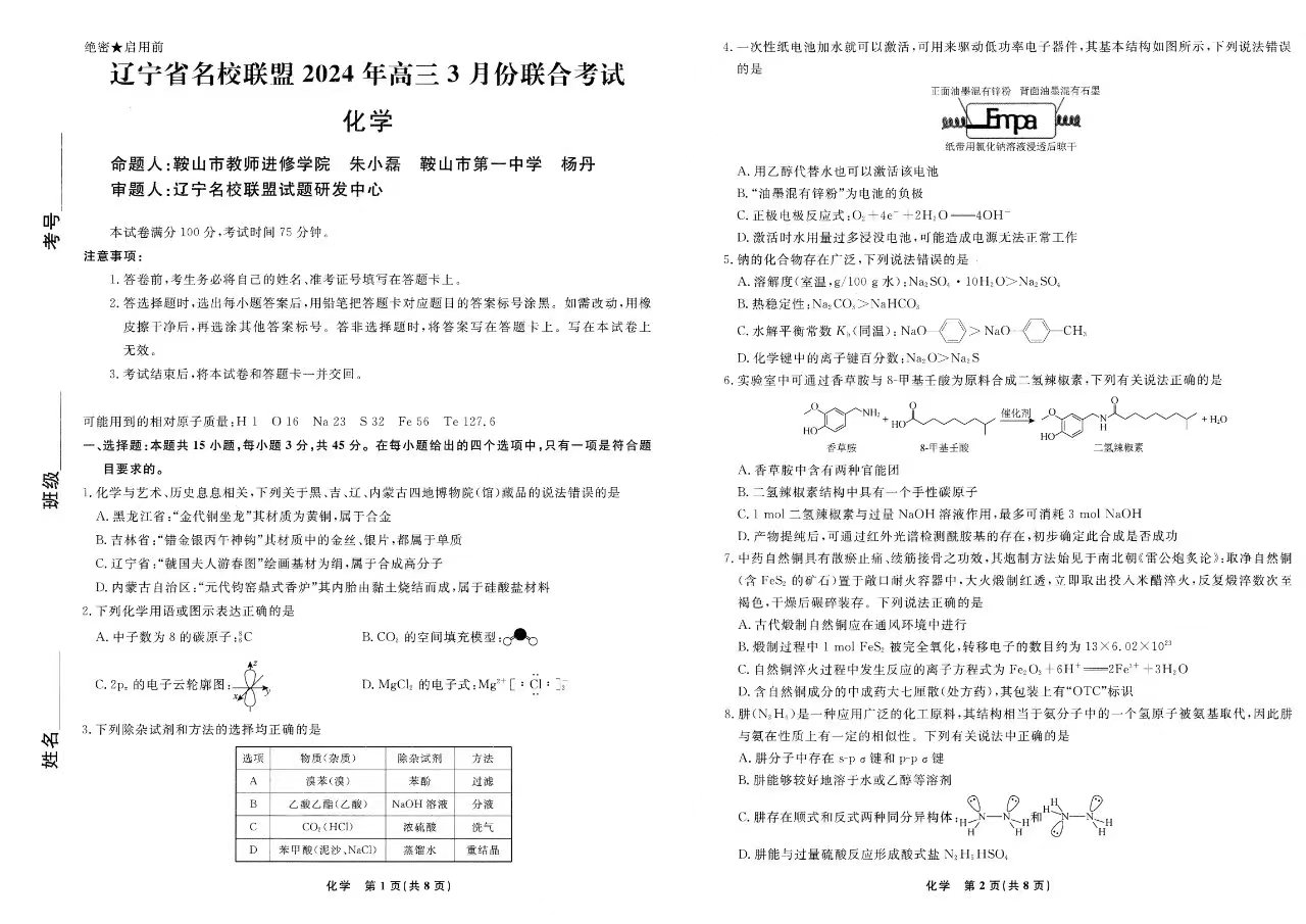 一、2024辽宁名校联盟