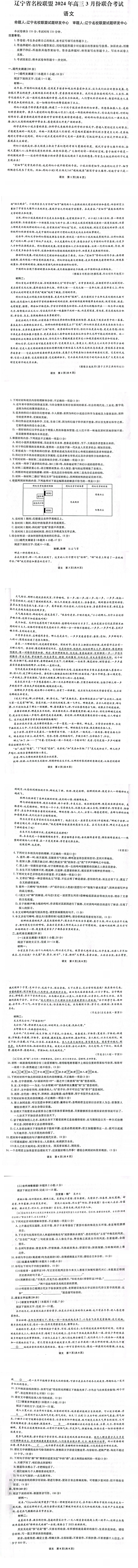 1、辽宁名校联盟2024语文答案