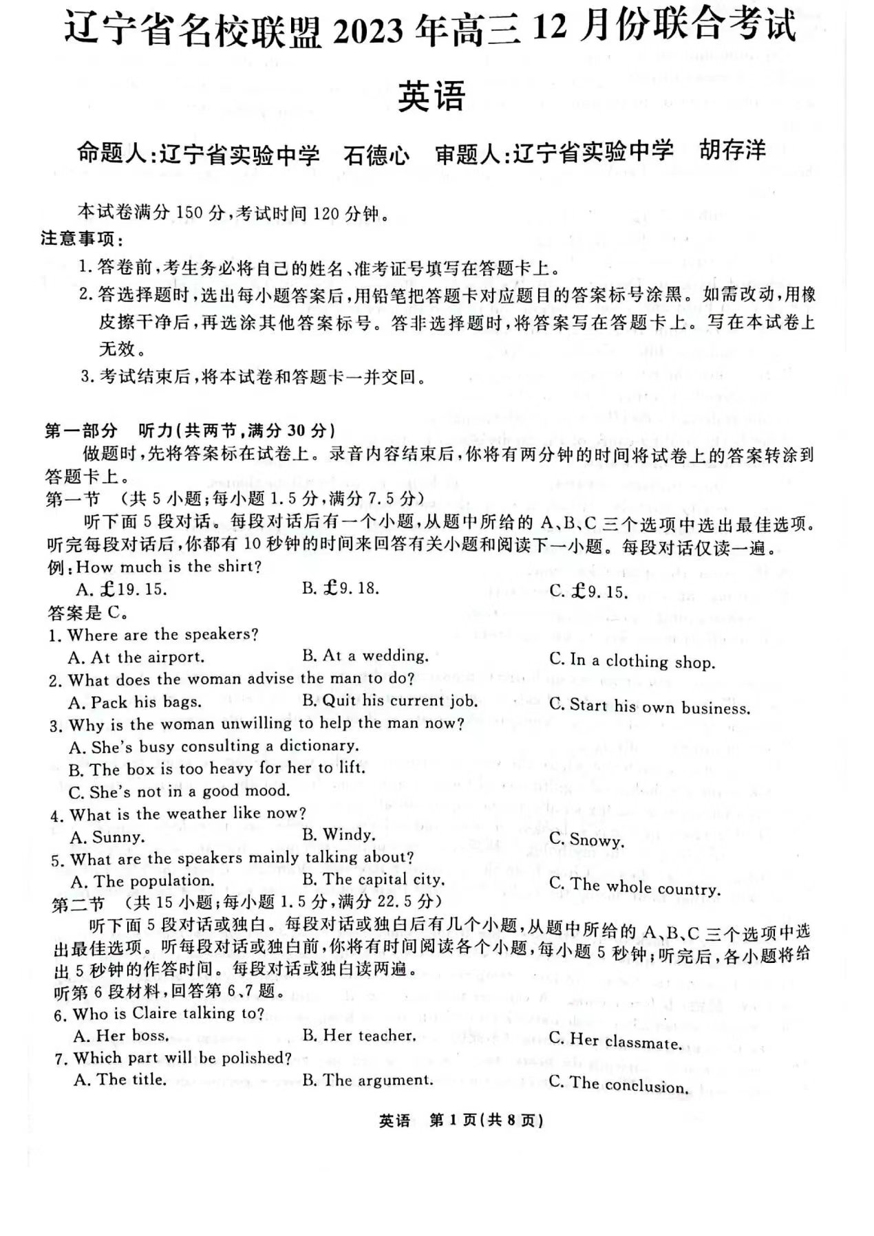 英语考试一旦结束,小灯塔会立即更新2024辽宁名校联盟高三三月联考英语考试试题和答案解析。