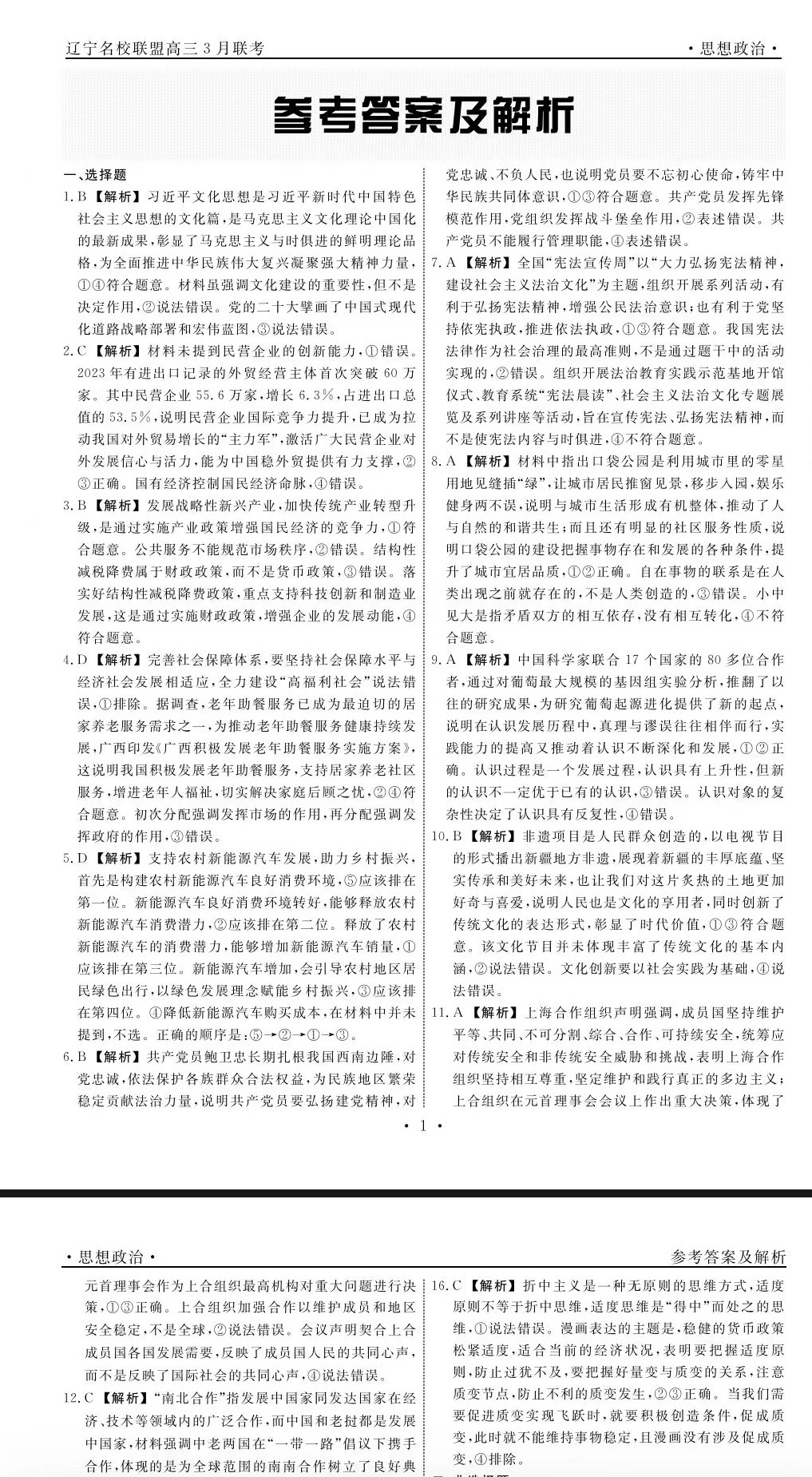 辽宁名校联盟3月联考定于2024年3月5日(星期二)至3月6日(星期三)举行,考试时长共计两天,包含了语文、数学、物理、历史、化学、政治等九个科目。圆梦小灯塔在下文汇总了辽宁名校联盟2024高三3月联考各科目试卷和答案解析,可供辽宁、吉林、黑龙江三地的高三考生参考。