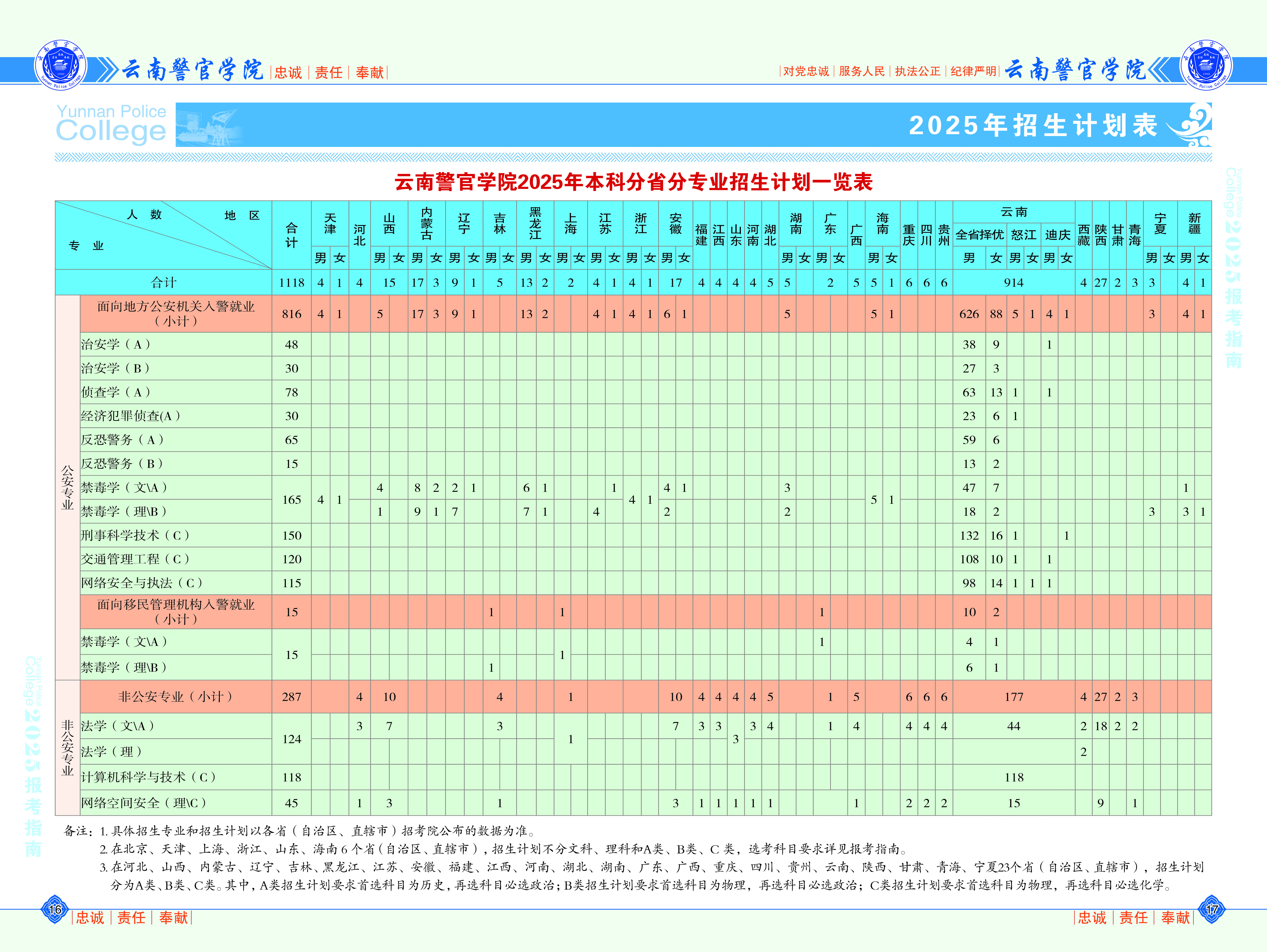 三、云南警官学院2025年招生计划