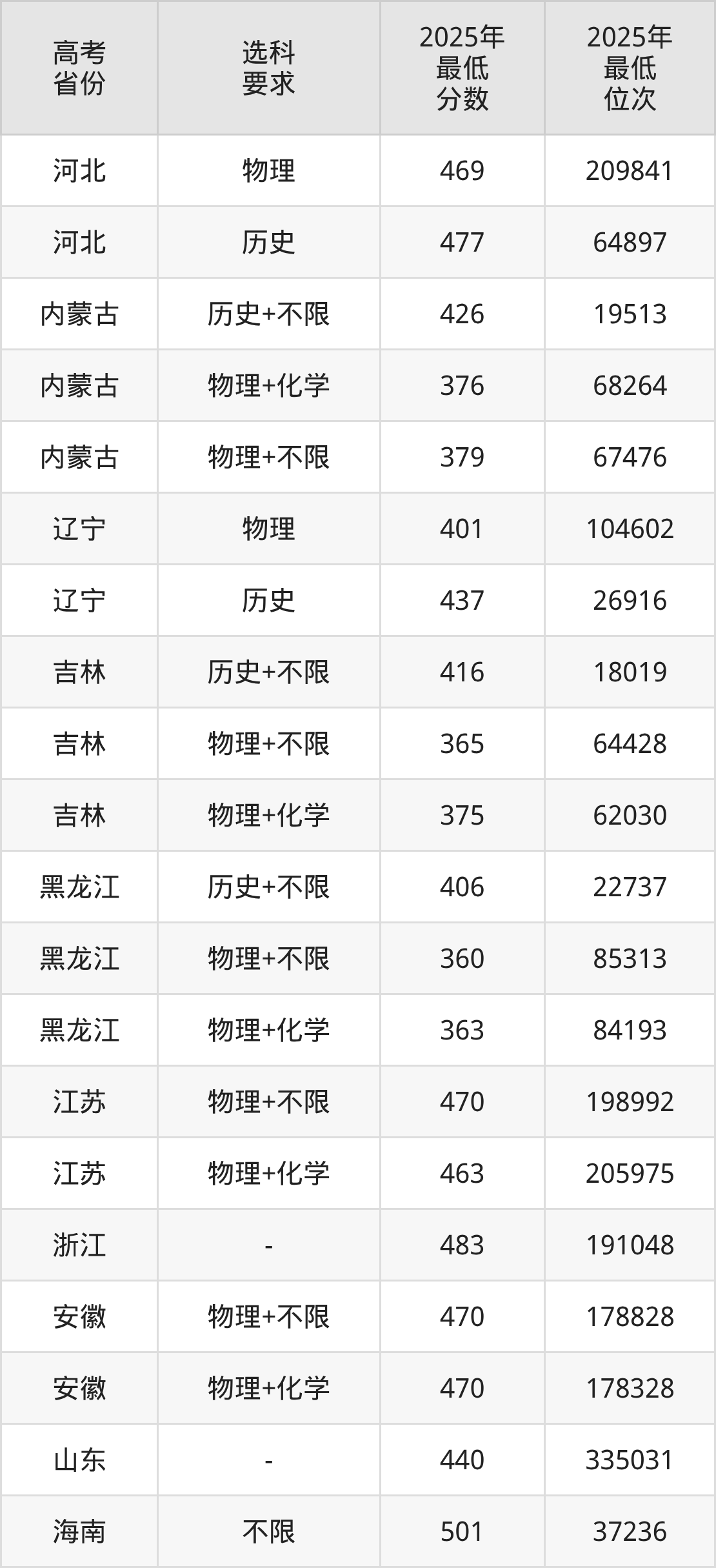 在2025年吉林高考物理类招生时,公办本科收分最低的是内蒙古民族大学第007组,最低分是170分、位次是78981位。再看吉林动画学院,2025年在吉林物理类的最低录取分数线是365分,最低位次是64428位。