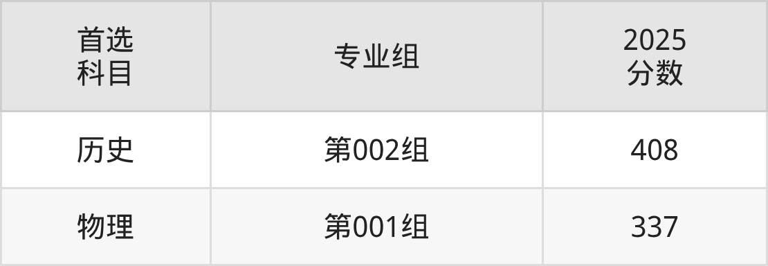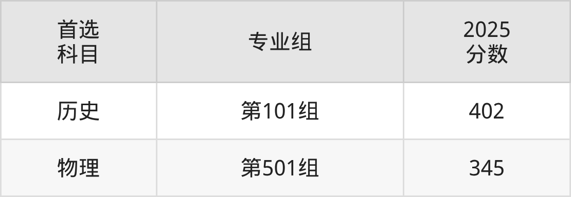 | 大学名称 | 选科 要求 | 2025 分数 | 2025 位次 |