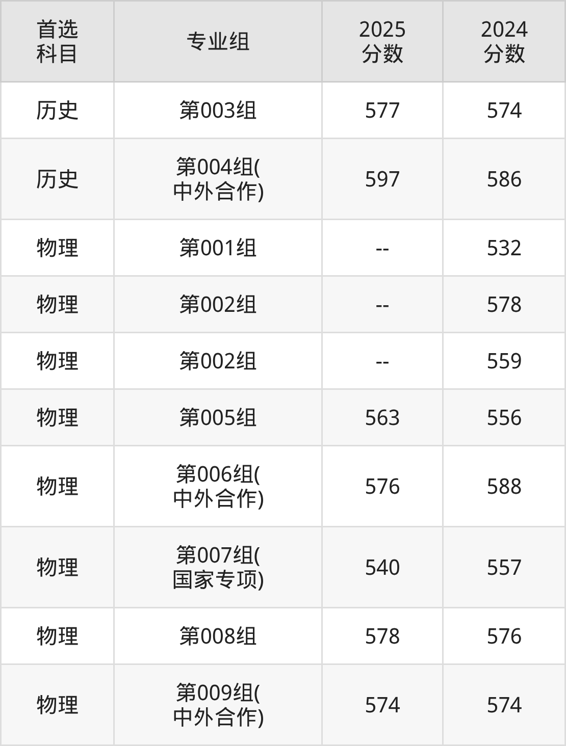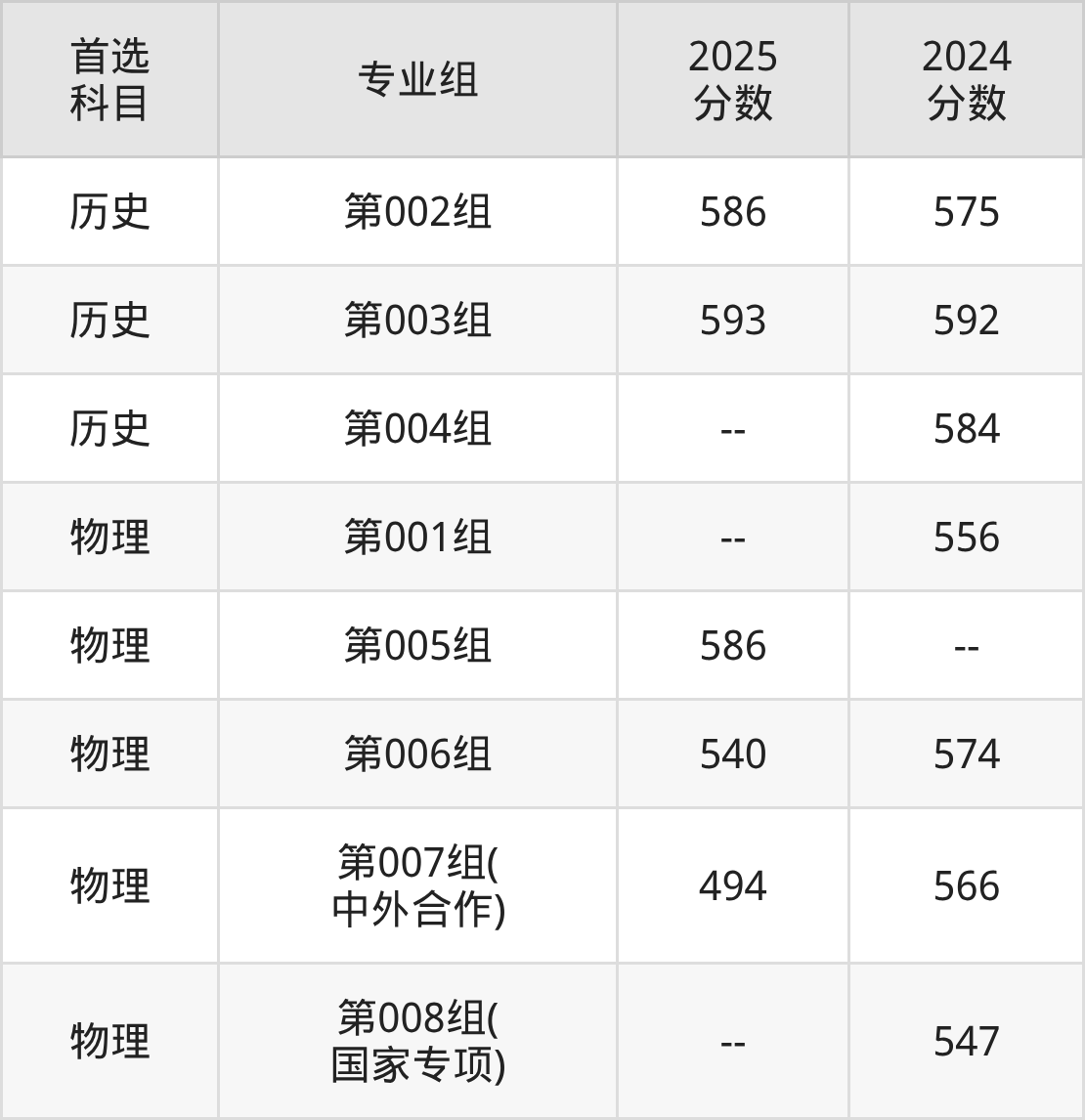 | 大学名称 | 选科 要求 | 2025 分数 | 2025 位次 |