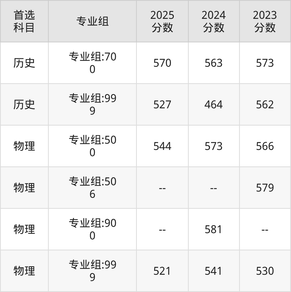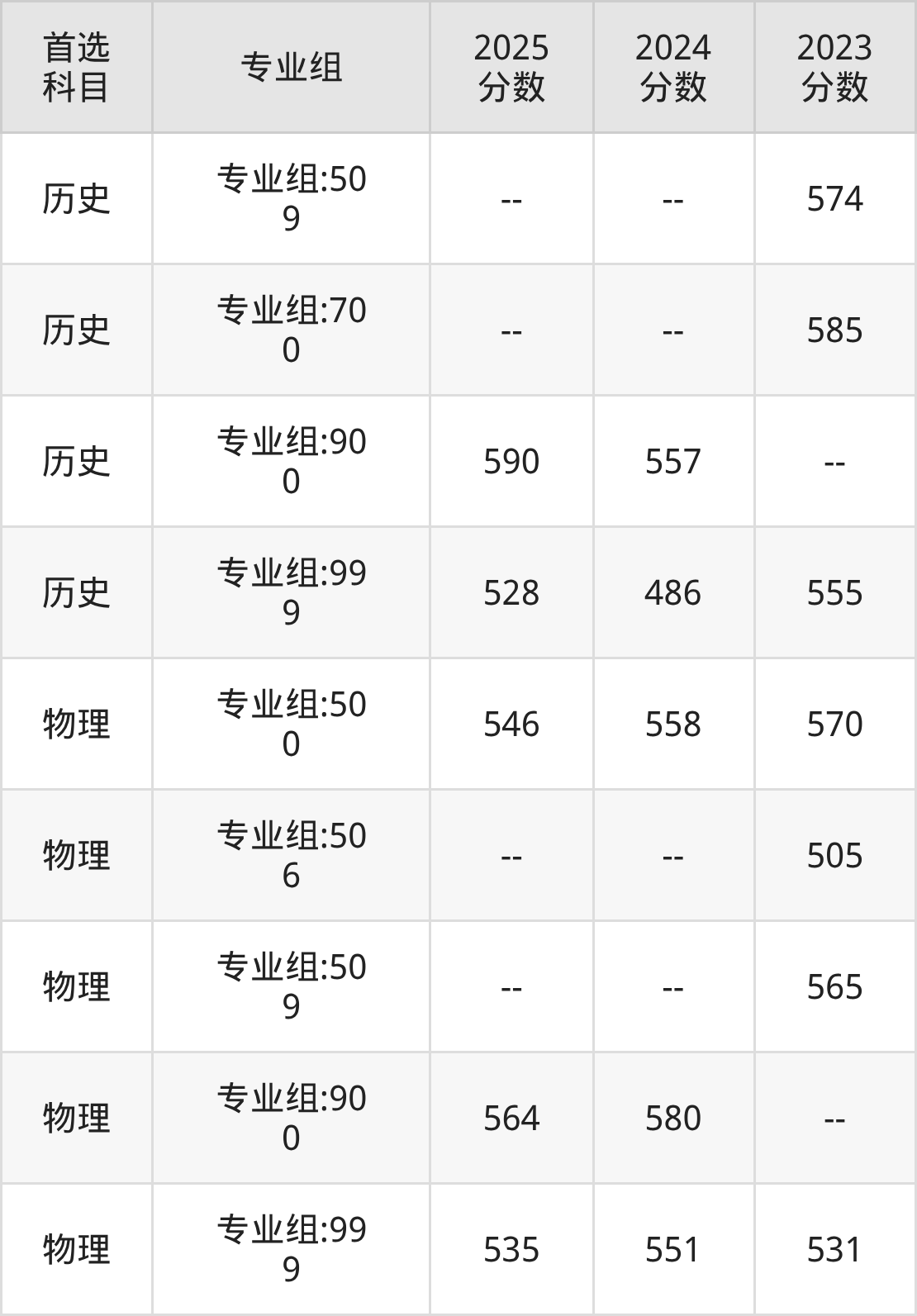 | 大学名称 | 选科 要求 | 2025 分数 | 2025 位次 |