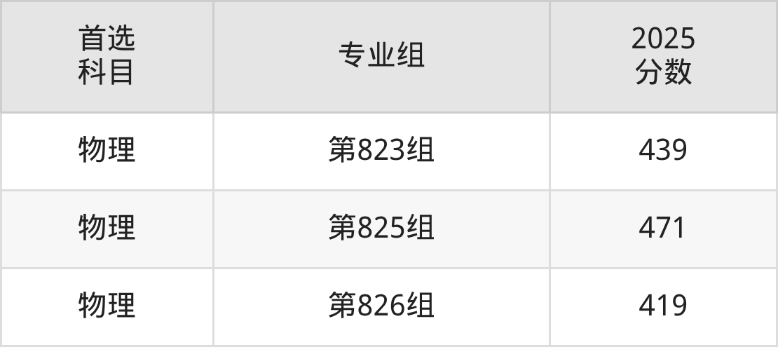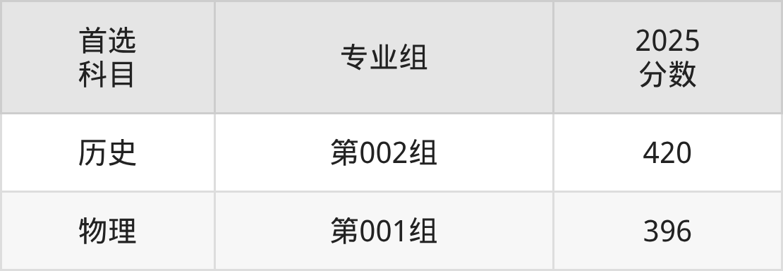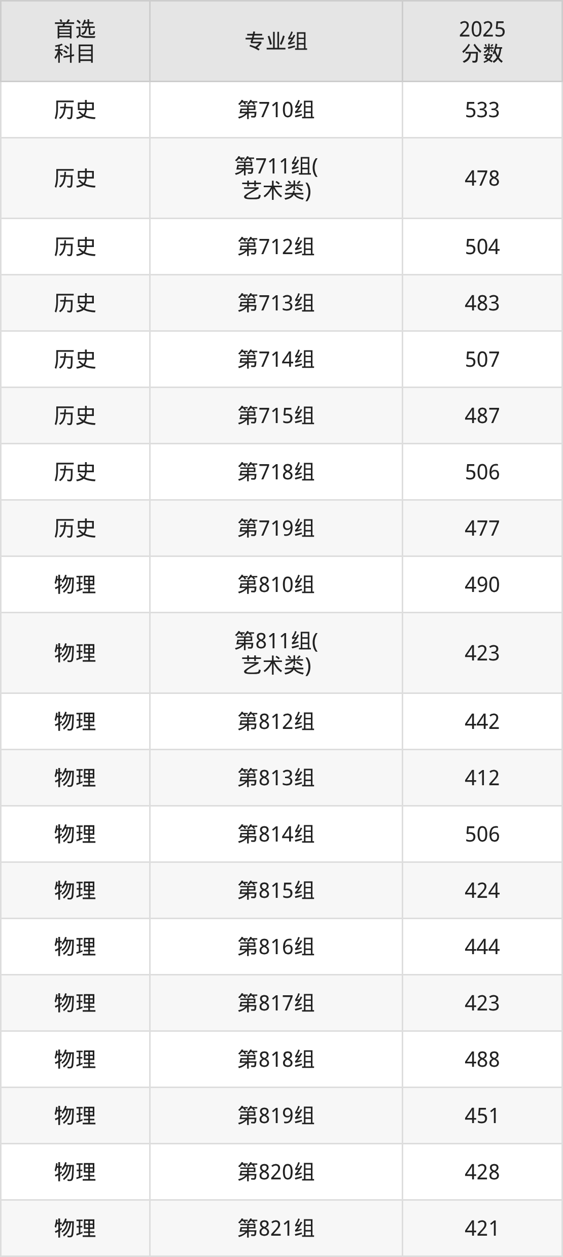 | 大学名称 | 选科 要求 | 2025 分数 | 2025 位次 |