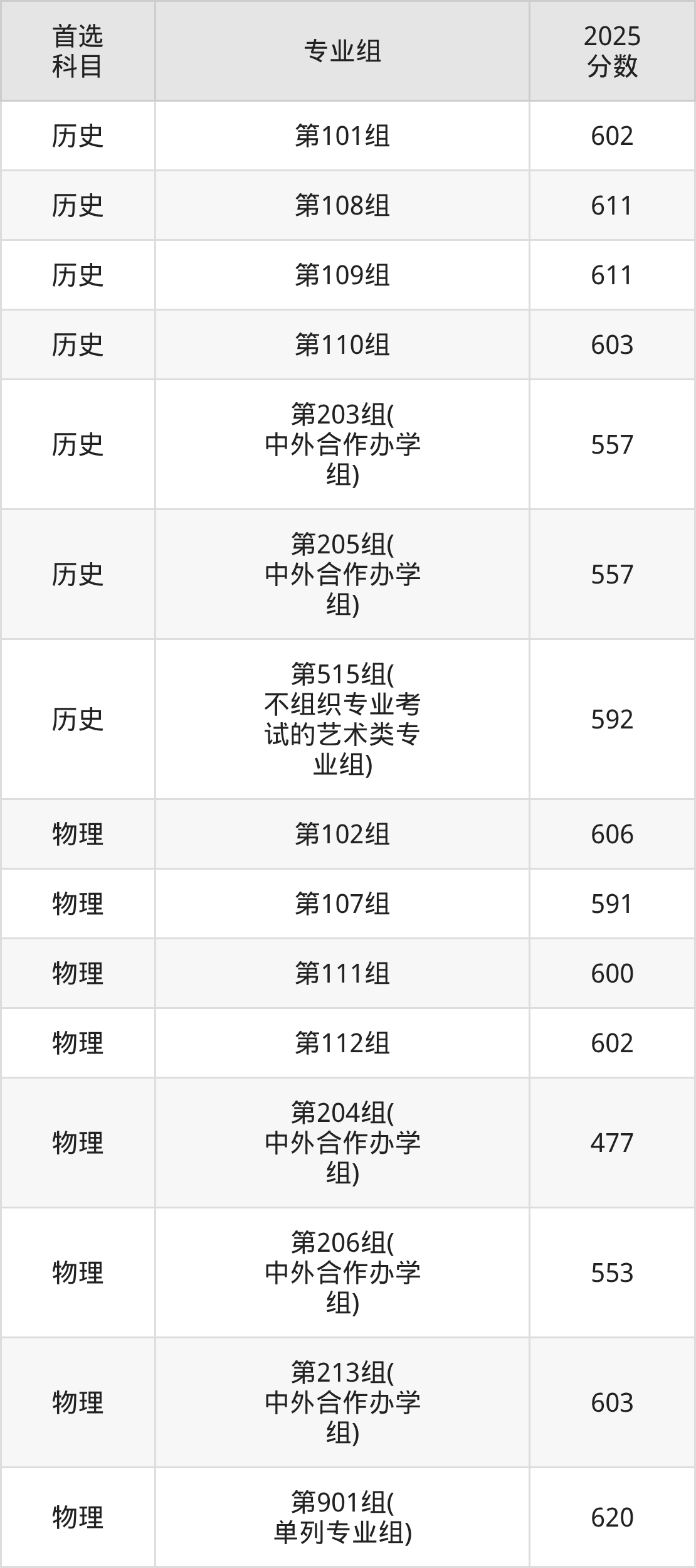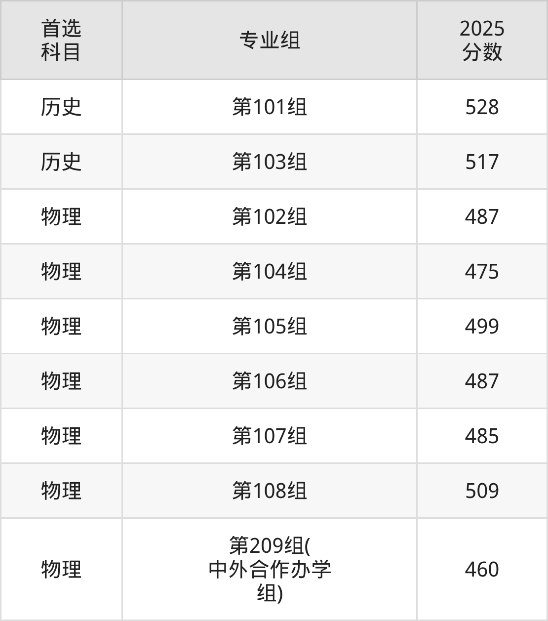 | 大学名称 | 选科 要求 | 2025 分数 | 2025 位次 |