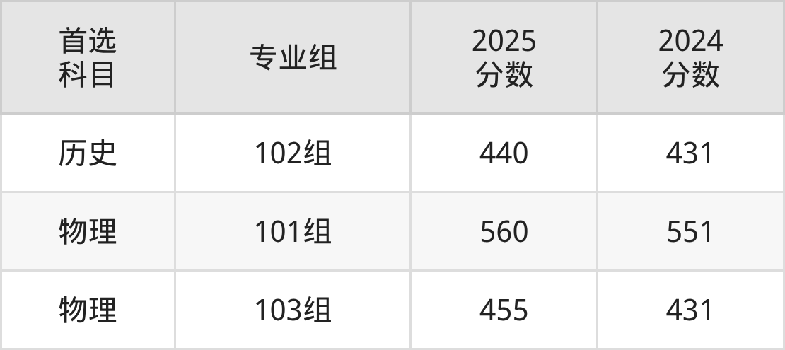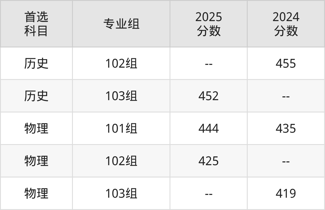 | 大学名称 | 选科 要求 | 2025 分数 | 2025 位次 |