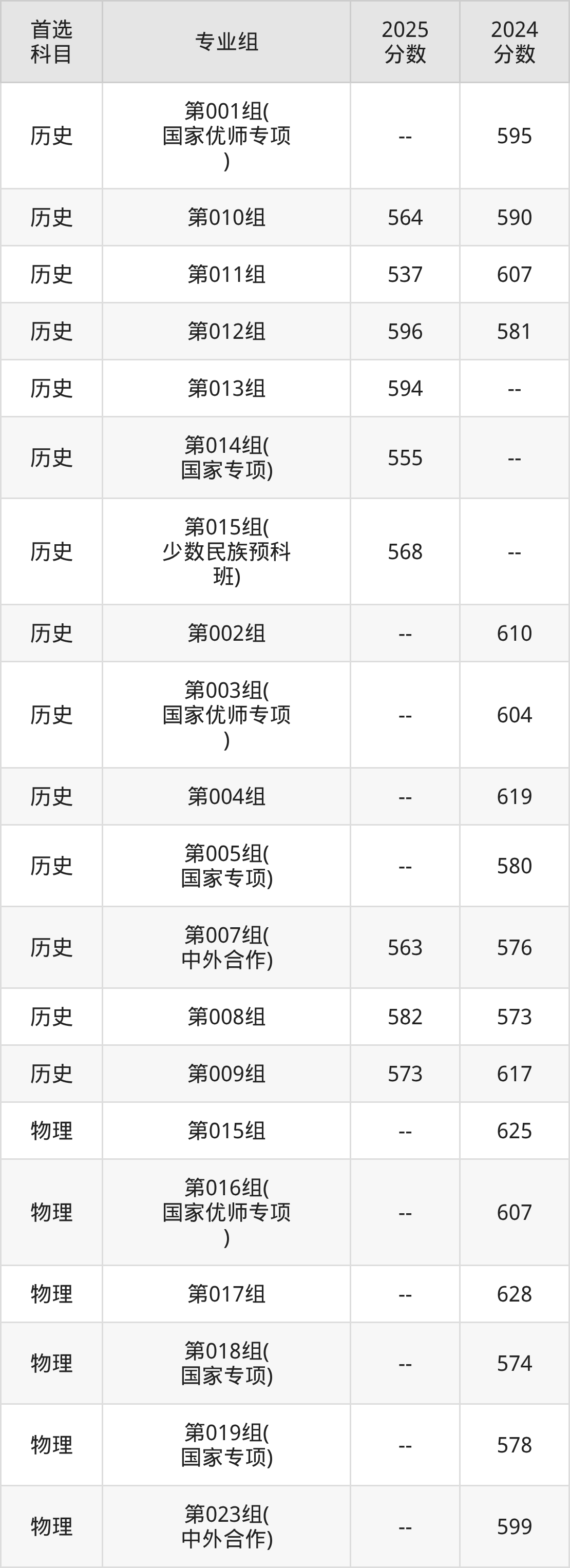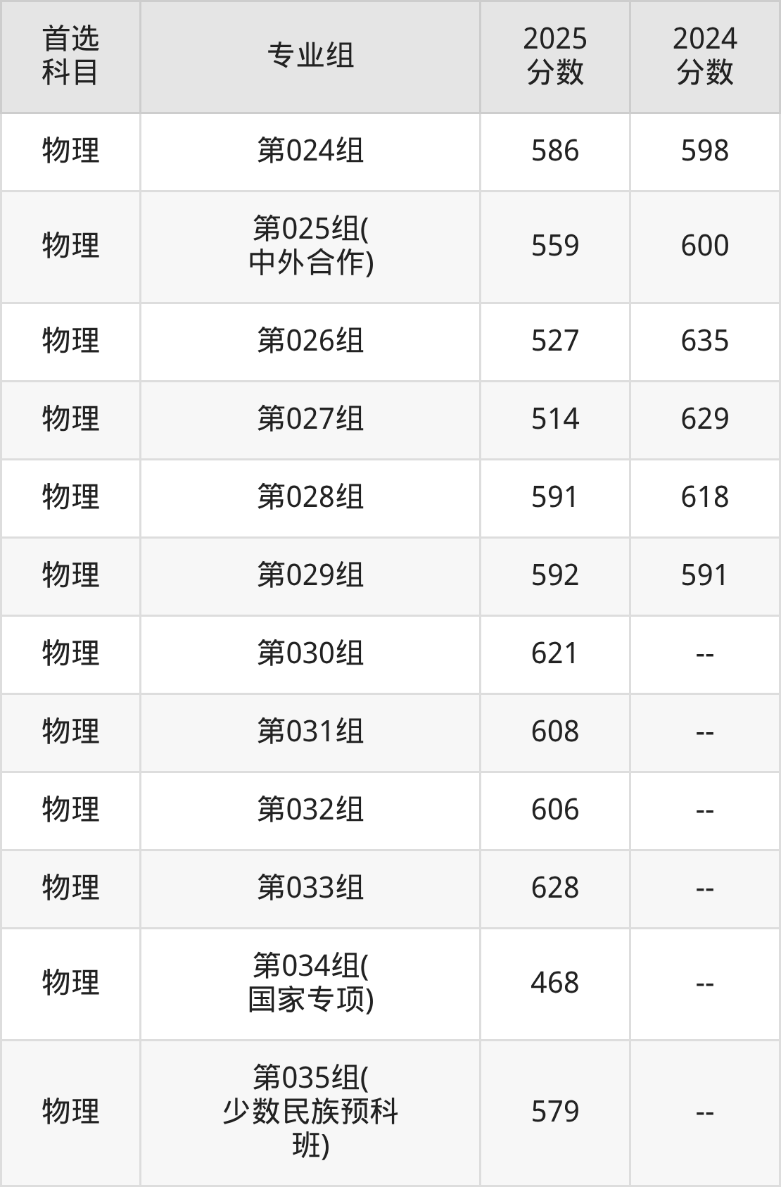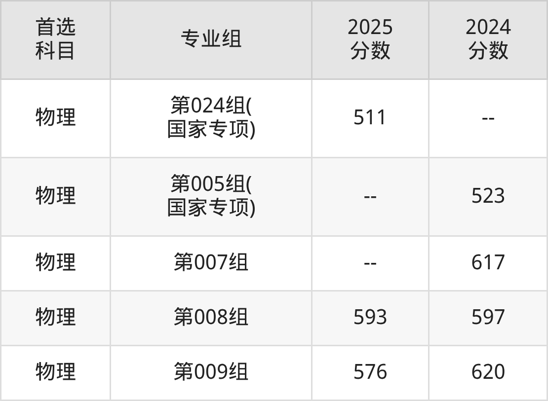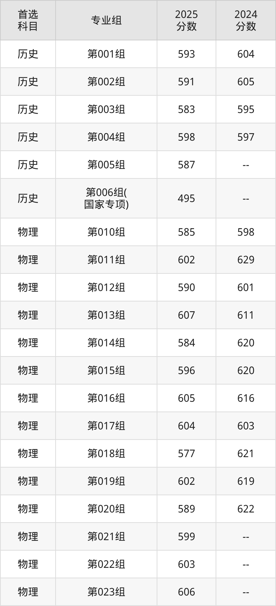 | 大学名称 | 选科 要求 | 2025 分数 | 2025 位次 |