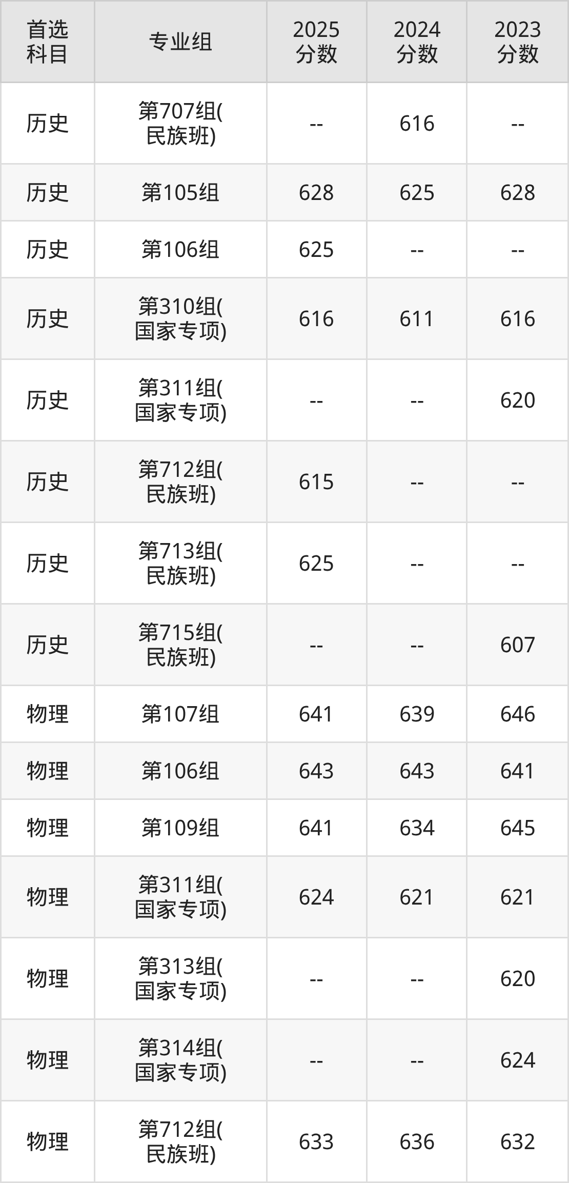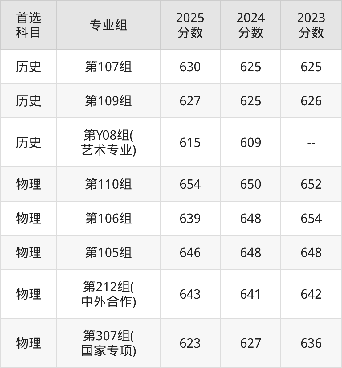 | 大学名称 | 选科 要求 | 2025 分数 | 2025 位次 |