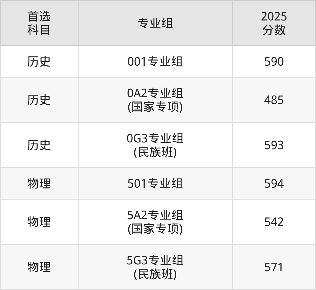 | 大学名称 | 选科 要求 | 2025 分数 | 2025 位次 |