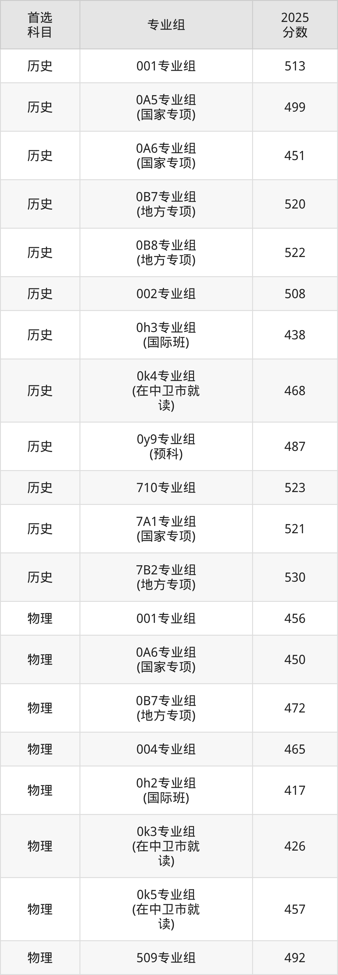 | 北方民族大学001专 业组 | 不限 | 484 | 3293 |