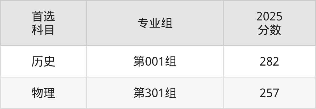| 大学名称 | 选科 要求 | 2025 分数 | 2025 位次 |
