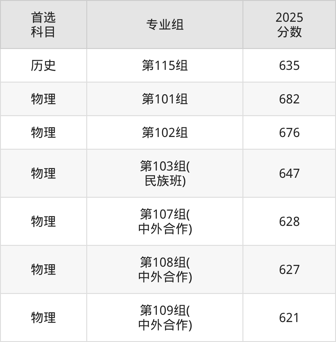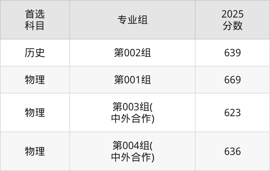 | 大学名称 | 选科 要求 | 2025 分数 | 2025 位次 |