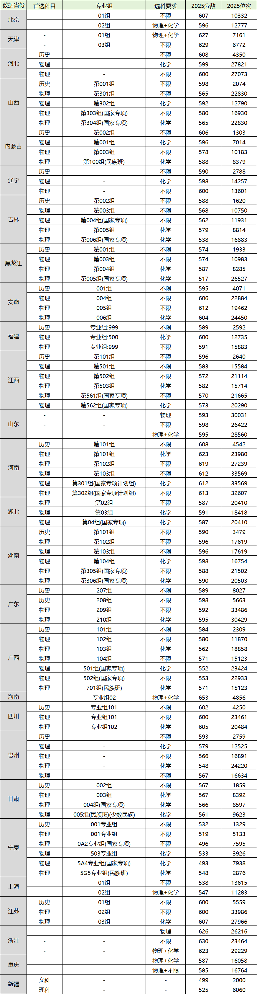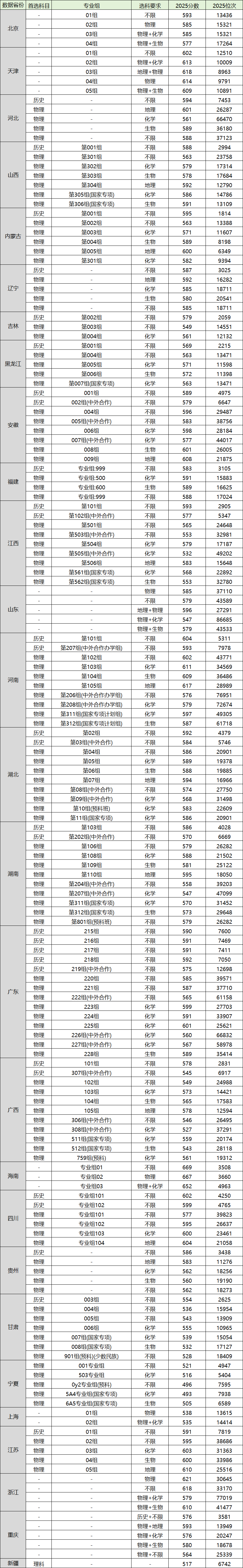 2025年华中农业大学在全国各省的录取分数线及位次如下: