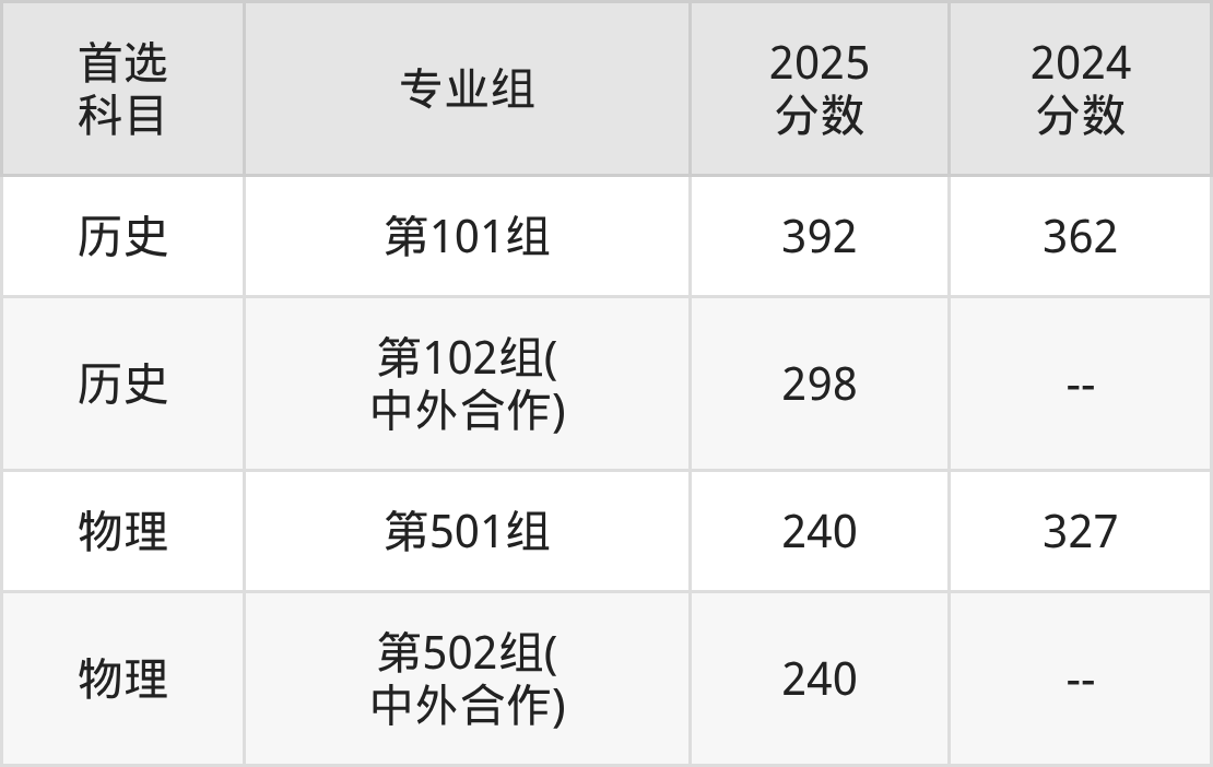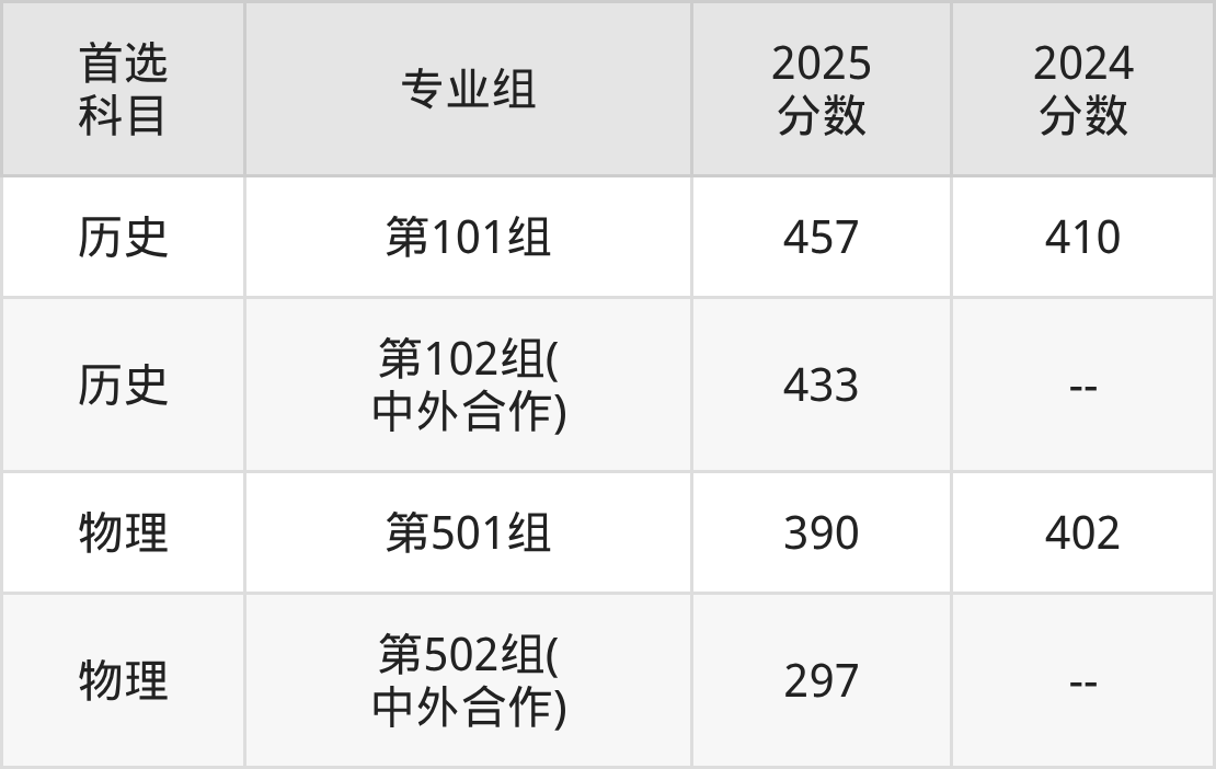 | 大学名称 | 选科 要求 | 2025 分数 | 2025 位次 |