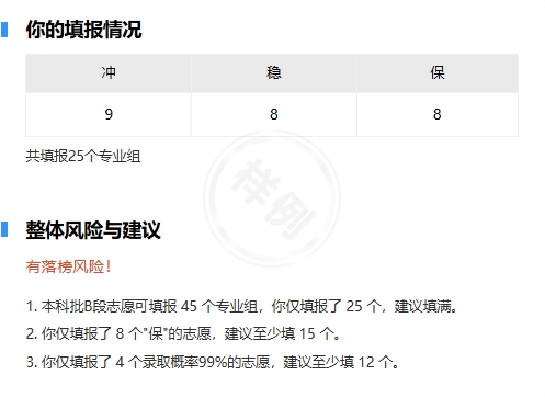 除了推荐大学,圆梦志愿网站还具备志愿风险评估功能。它会根据考生所填报的志愿方案,结合各大学的录取概率和历年录取情况,分析方案的合理性,评估是否存在落榜风险。比如,如果考生仅填报了8个录取概率99%的志愿,网站会建议至少填15个,以增加录取的安全性。这一功能有助于考生科学规划志愿,避免因填报不当而错失升学机会。