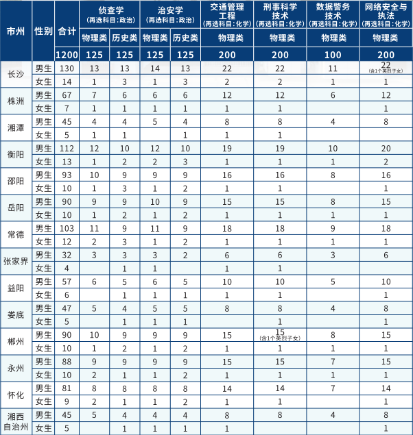 一、2025湖南警察学院招生计划表
