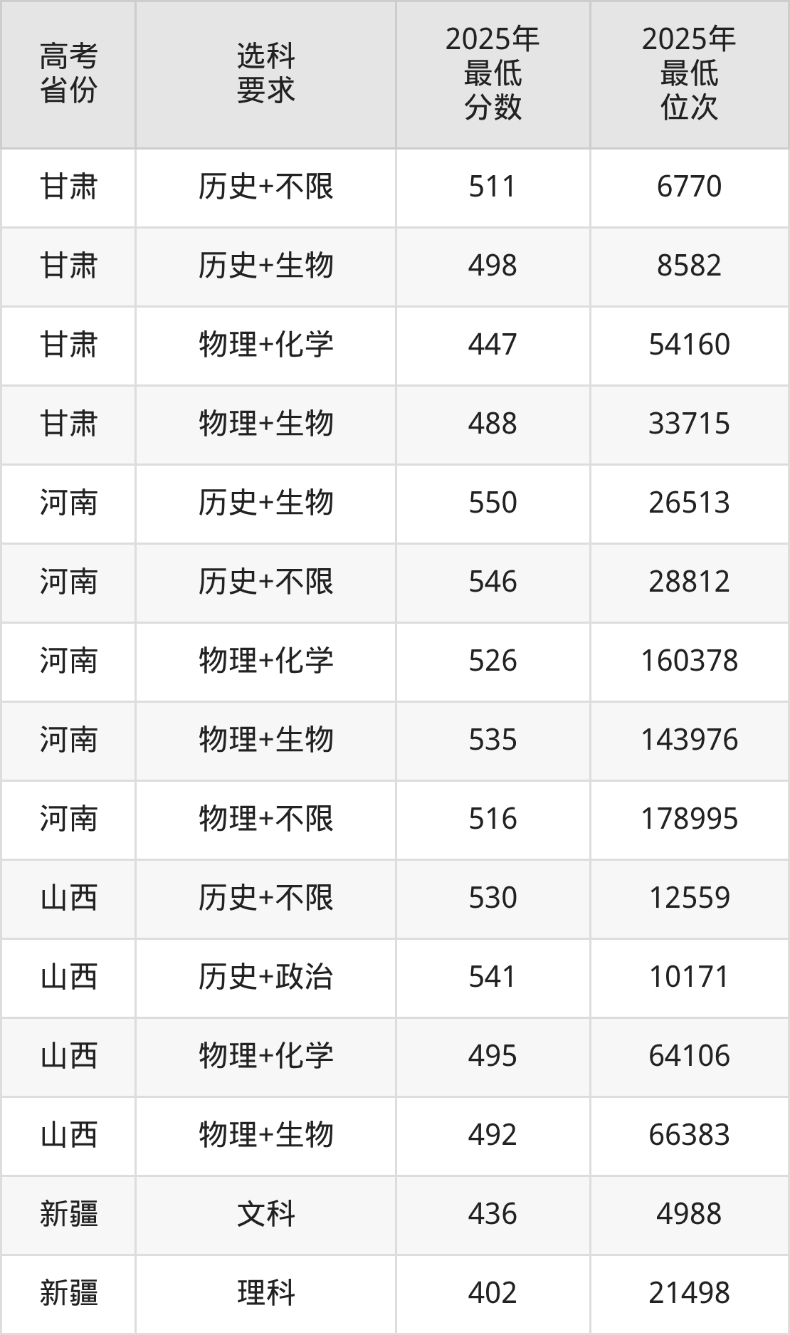 在2025年新疆高考理科招生时,211收分最低的是四川农业大学,最低分是421分、位次是18415位。再看大理大学,2025年在新疆理科的最低录取分数线是402分,最低位次是21498位。