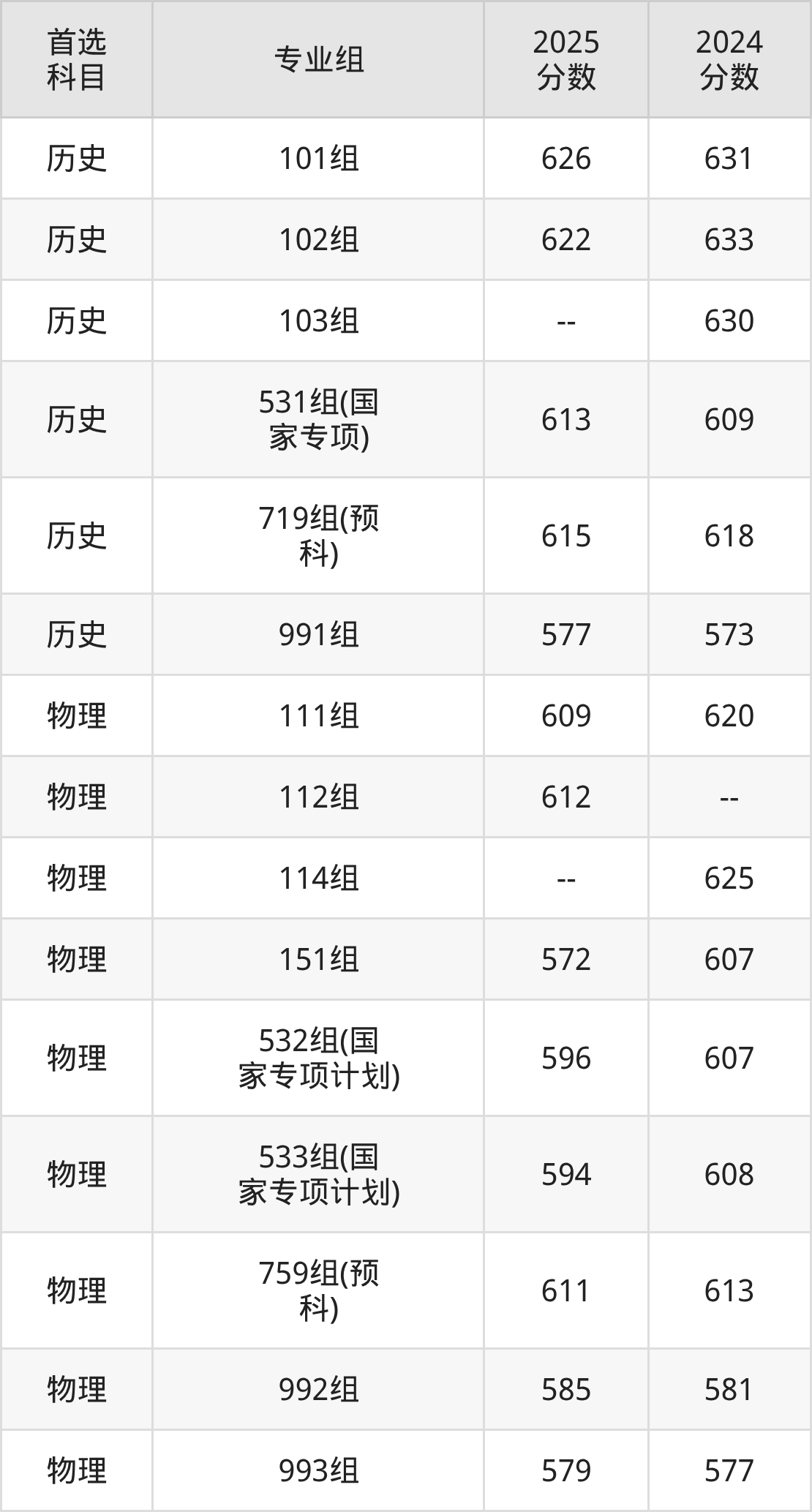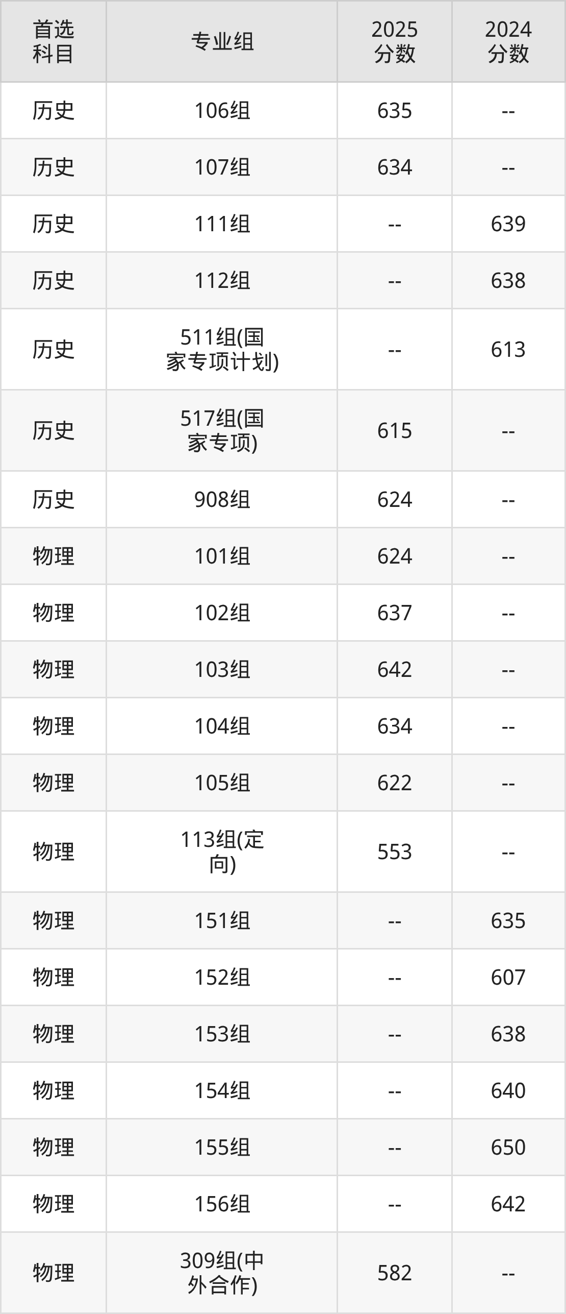 | 大学名称 | 选科 要求 | 2025 分数 | 2025 位次 |