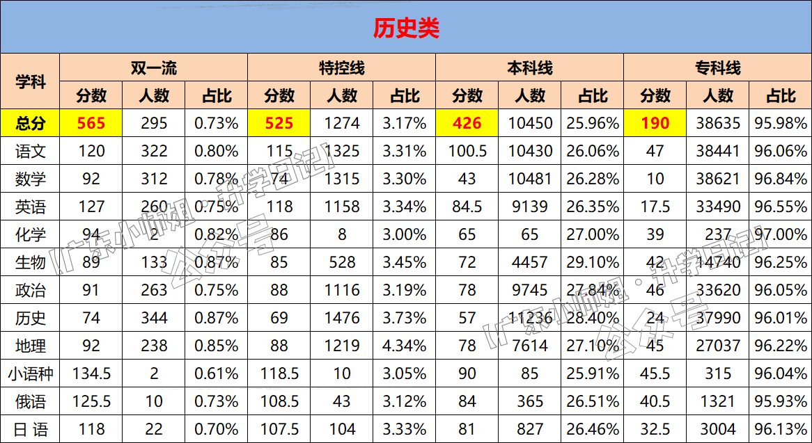 历史类考生可重点关注以下单科有效分,尤其文科综合科目: