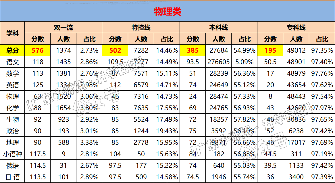 2026届广东高三11月金太阳大联考分数线已正式公布!物理类双一流线576分、特控线502分、本科线385分、专科线195分;历史类双一流线565分、特控线525分、本科线426分、专科线190分。