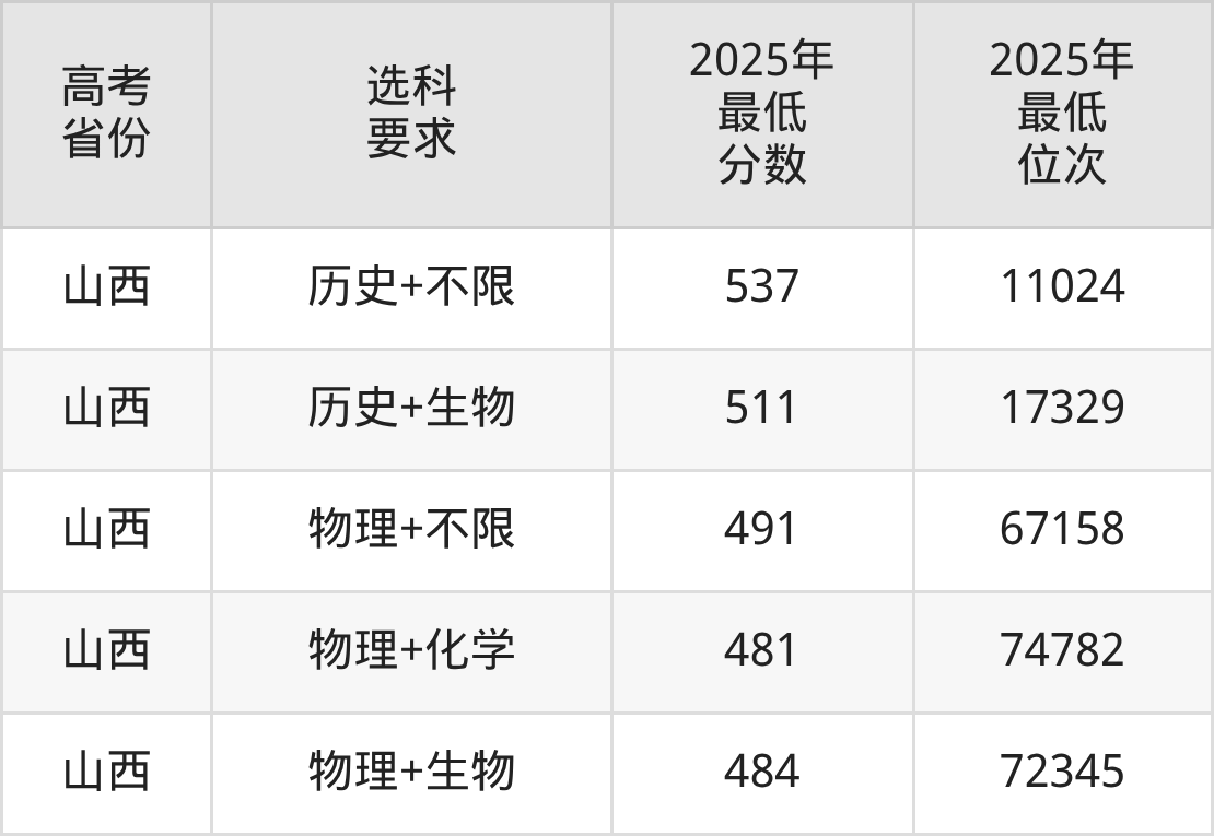 在2025年山西高考物理类招生时,211收分最低的是东北林业大学第304组(国家专项计划),最低分是448分、位次是100390位。再看山西中医药大学,2025年在山西物理类的最低录取分数线是481分,最低位次是74782位。