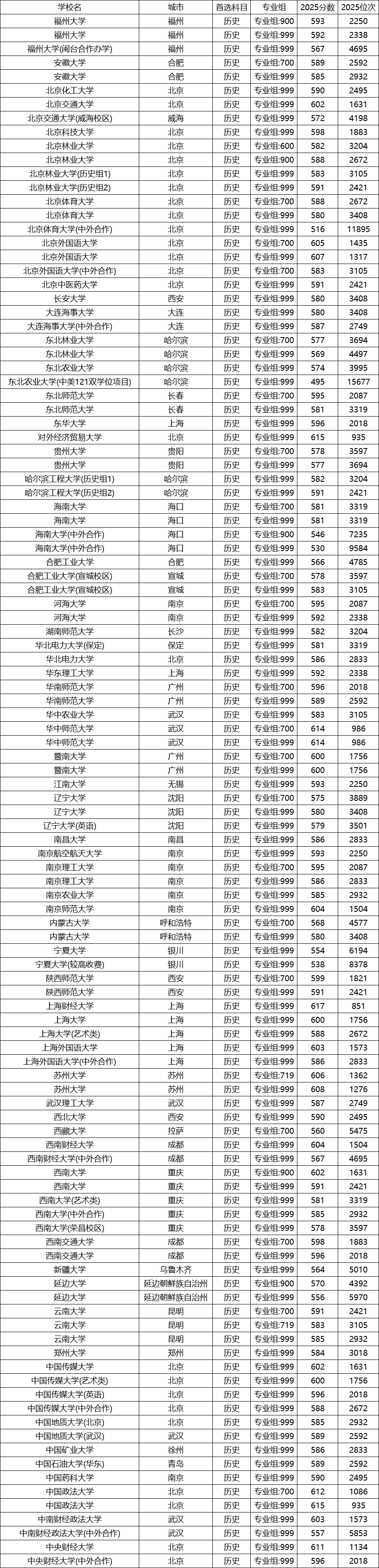 总结建议:历史类考生若目标为211大学,分数在580分以上有较广选择;若分数在500–560分之间,可重点关注中外合作、农林类或西部地区的211院校。