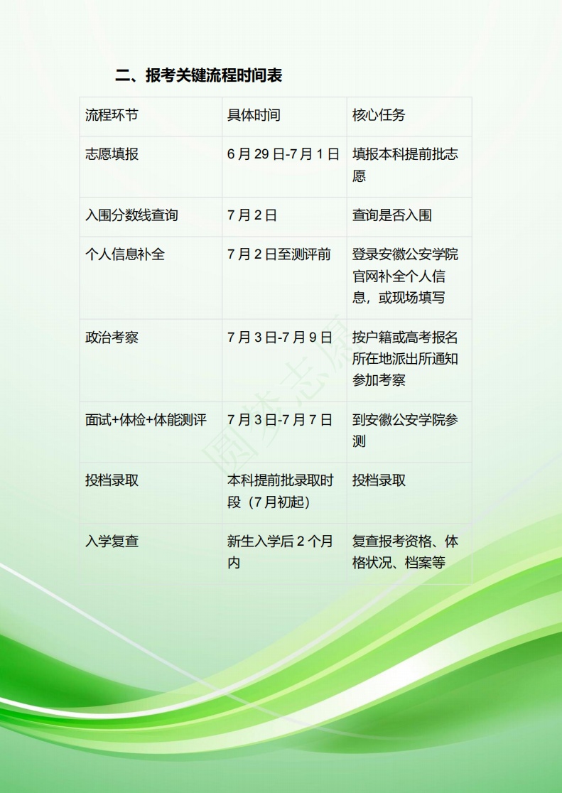一、安徽警校提前批报考时间流程图