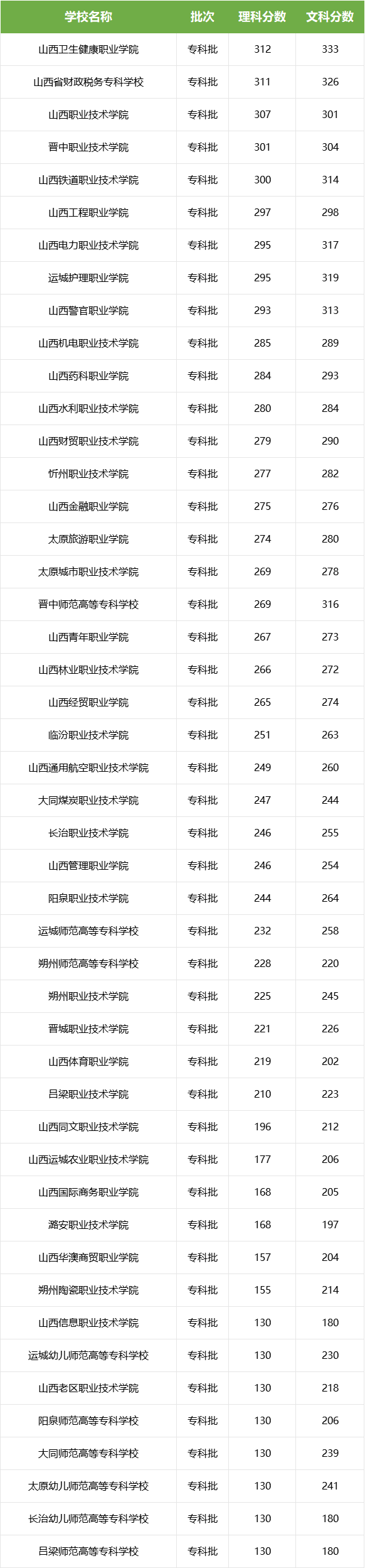 以2023年山西高职院校在山西省招生的分数线为例,可以通过数据看看山西省分数高、分数低的大专都有哪些。