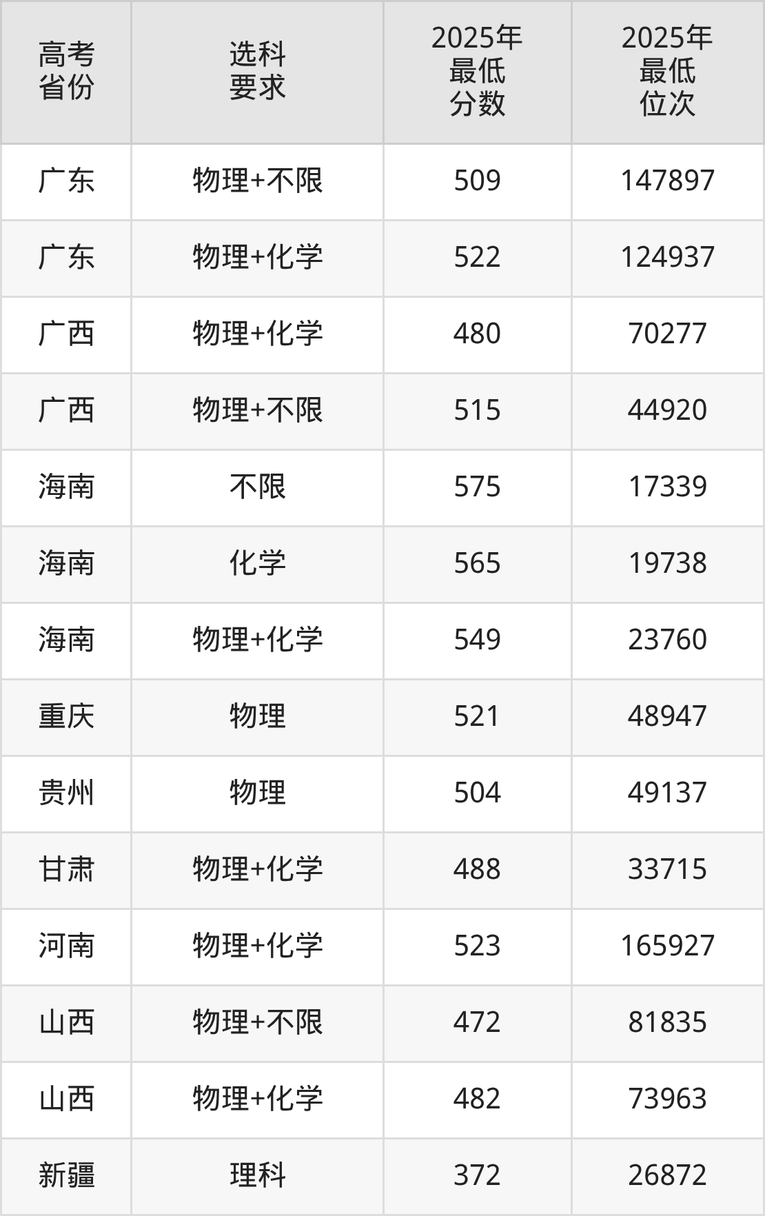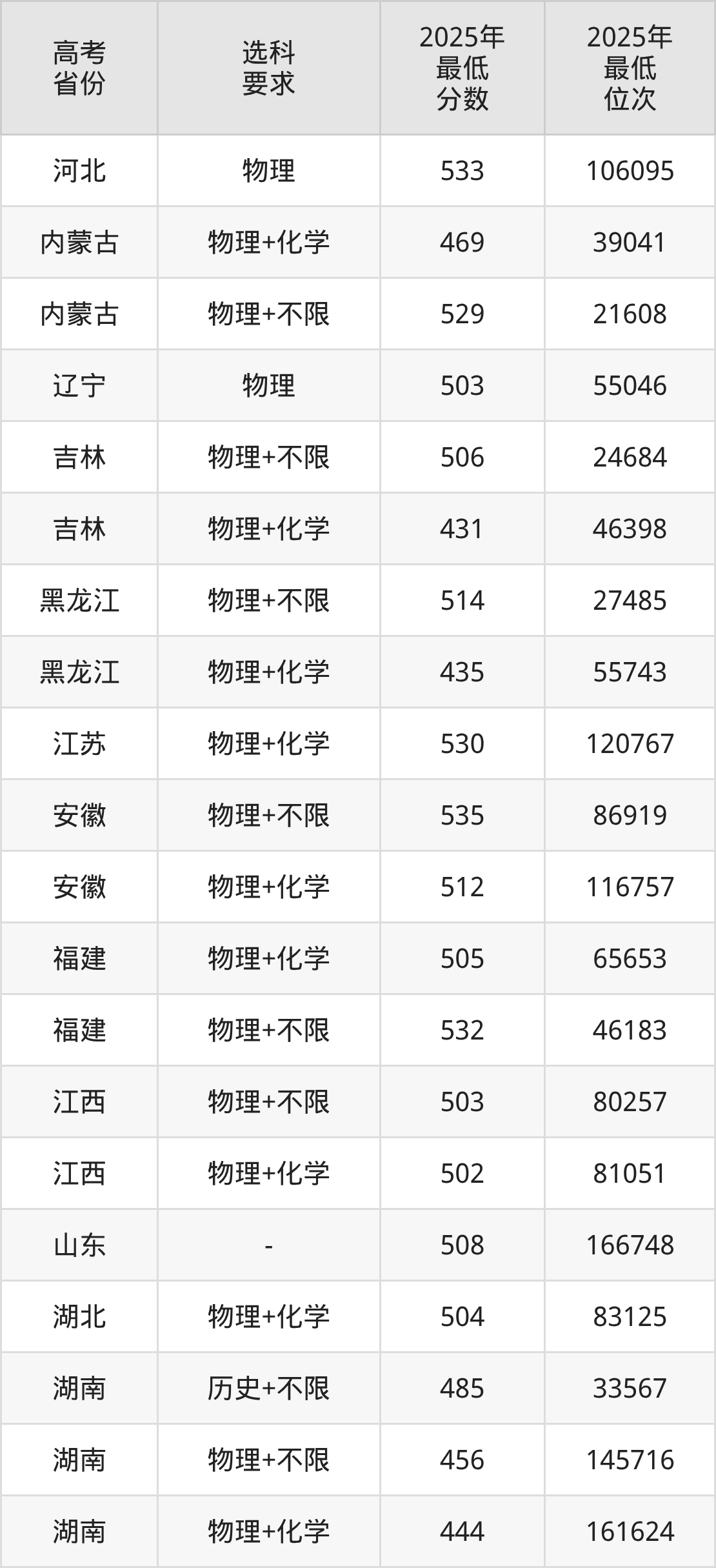 在2025年湖南高考物理类招生时,211收分最低的是海南大学第218组(中外合作办学或国际项目),最低分是462分、位次是137709位。再看湖南医药学院,2025年在湖南物理类的最低录取分数线是444分,最低位次是161624位。