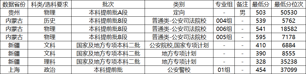 本科公安专业:文科男生约410分(国家专项),普通类约450分以上;理科男生约328分(地方专项),普通类约400分以上