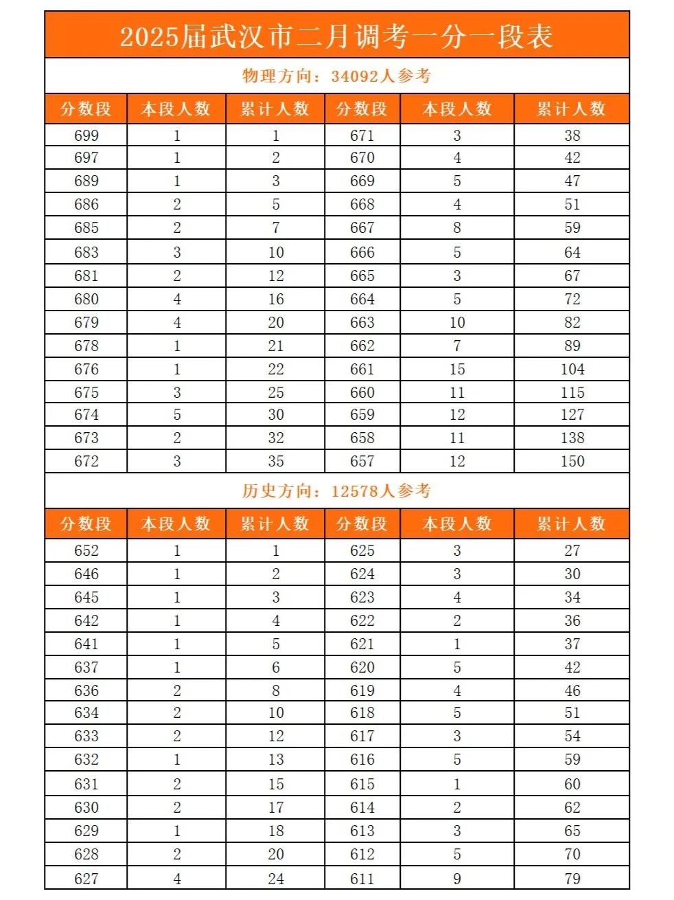 回顾2025年武汉二调的参考人数和排名分布,可以帮助大家预估竞争格局: