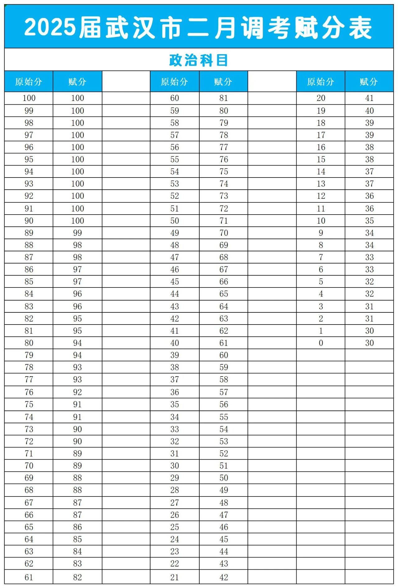 目前2026年武汉二调赋分表尚未出炉,待官方公布后,我们会在评论区更新。不过,湖北新高考的赋分规则是固定的,考生可以提前了解,以便正确看待自己的再选科目成绩。